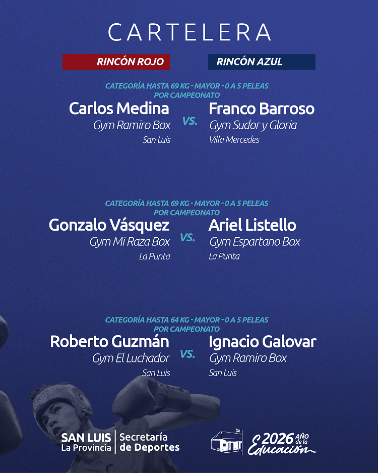 Durante la conferencia de prensa, la secretaria de Deportes, María Adelaida Muñiz, destacó la importancia del evento y el crecimiento sostenido del boxeo en la provincia: “Estamos muy contentos de presentar la segunda fecha de este torneo en un club icónico del boxeo en San Luis. Vamos a tener 12 peleas, con la mayor expectativa en este comienzo del 2026 con el mejor boxeo de la provincia”, señaló.