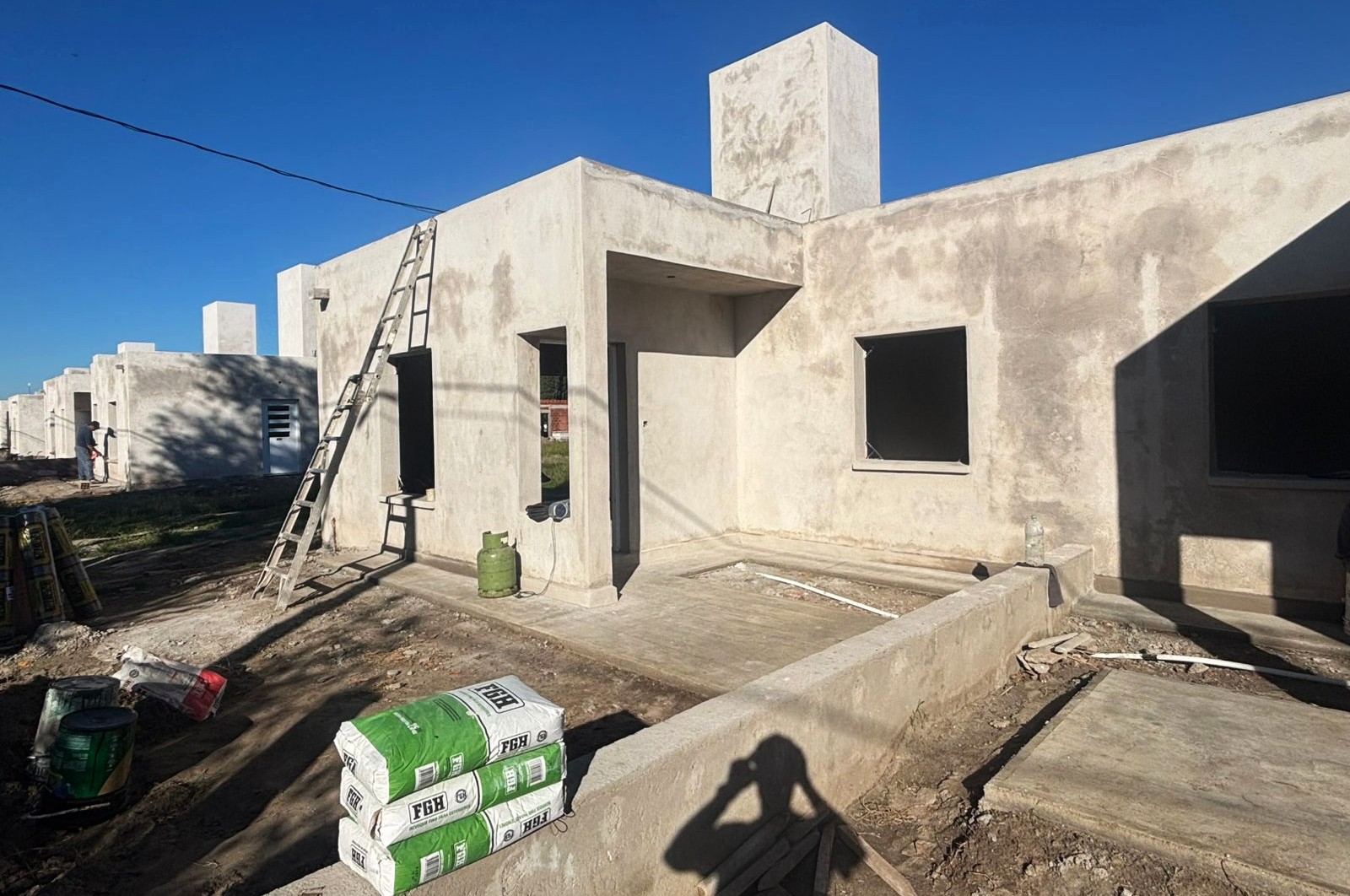En la localidad del departamento Pedernera ya se trabaja en terminaciones y detalles. En tanto, en las viviendas de la cabecera del departamento Chacabuco, las tareas se enfocan en los revoques finos exteriores y próximamente comenzará la impermeabilización de techos.