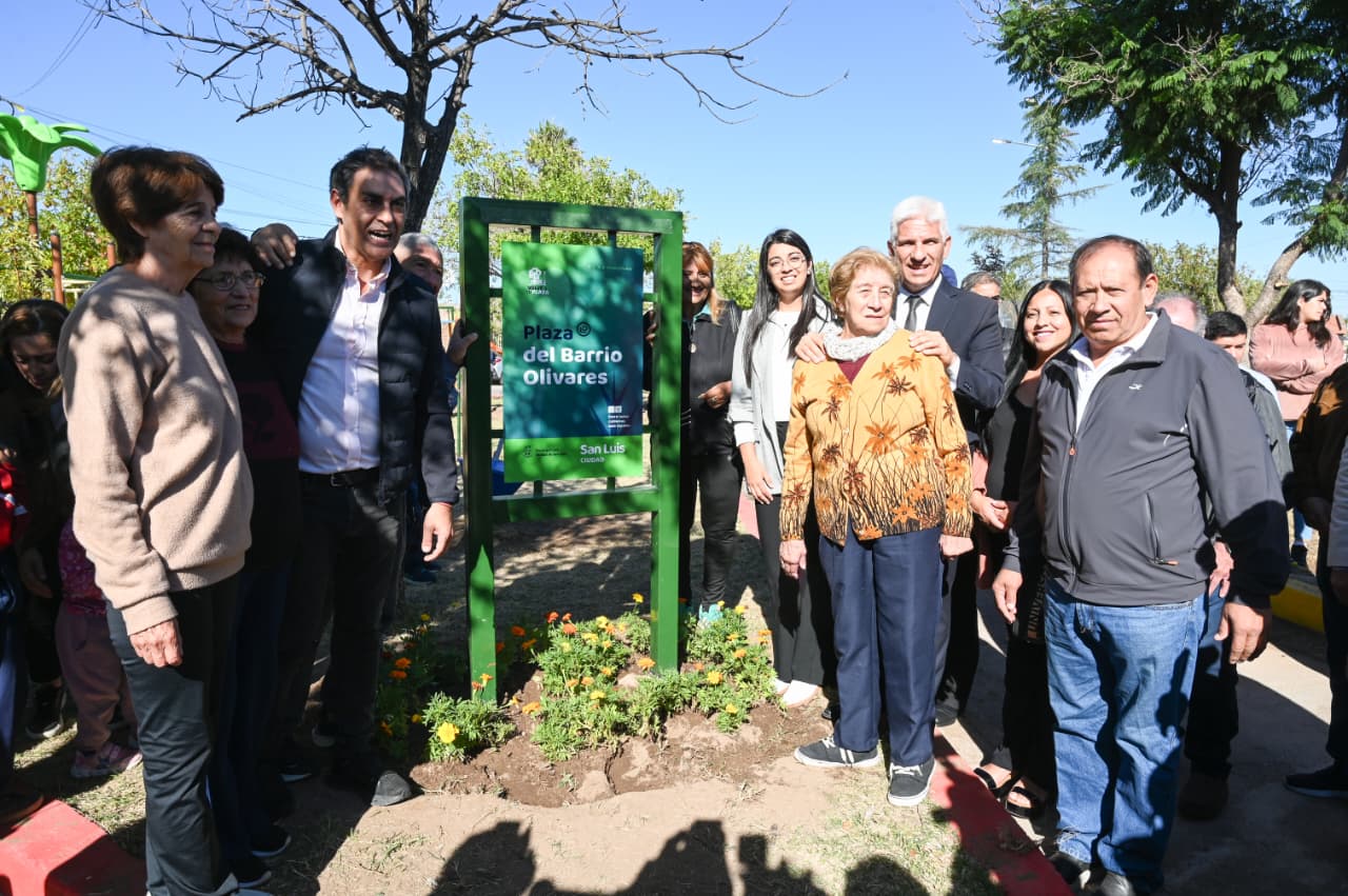 Este miércoles, la municipalidad de San Luis dio por inaugurada la renovación de la plaza del barrio Los Olivares, un espacio verde que por mucho tiempo fue reflejo del abandono. En el acto, del que participó el gobernador Claudio Poggi, también anunciaron el recambio de más de 60 luminarias de sodio por tecnología LED de toda la zona.