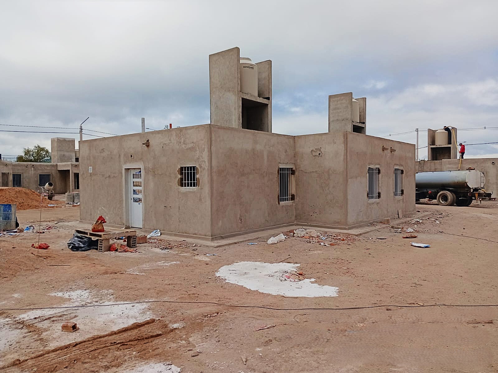 La dirección de Obras de Arquitectura y Viviendas detalló que, en las manzanas con mayor grado de avance, las unidades presentan una alta definición estructural y progresos hacia la etapa de terminaciones. En el exterior, la mampostería está completamente ejecutada, con revoque fino aplicado en gran parte de los paramentos. Las cubiertas planas ya están materializadas, con trabajos de impermeabilización en curso o recientemente finalizados. También destacan las estructuras elevadas destinadas a tanques de reserva, ya construidas y, en algunos casos, con los tanques colocados.