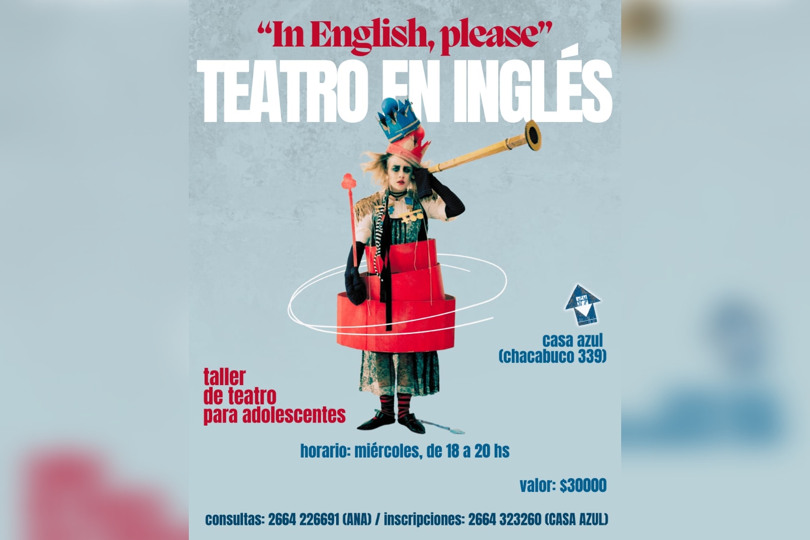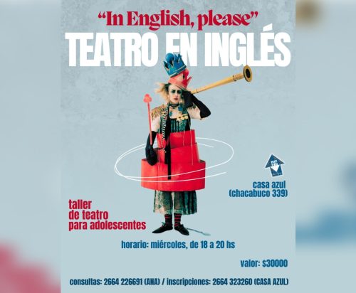 El espacio cultural y autogestivo Casa Azul, ubicado en Chacabuco 339 de la ciudad de San Luis, sumará a partir del 1° de abril un curso innovador que combina aprendizaje artístico y lingüístico. Se trata del taller ‘In english, please’, que se dictará todos los miércoles de 18:00 a 20:00. El valor del arancel es de $30.000 por mes.