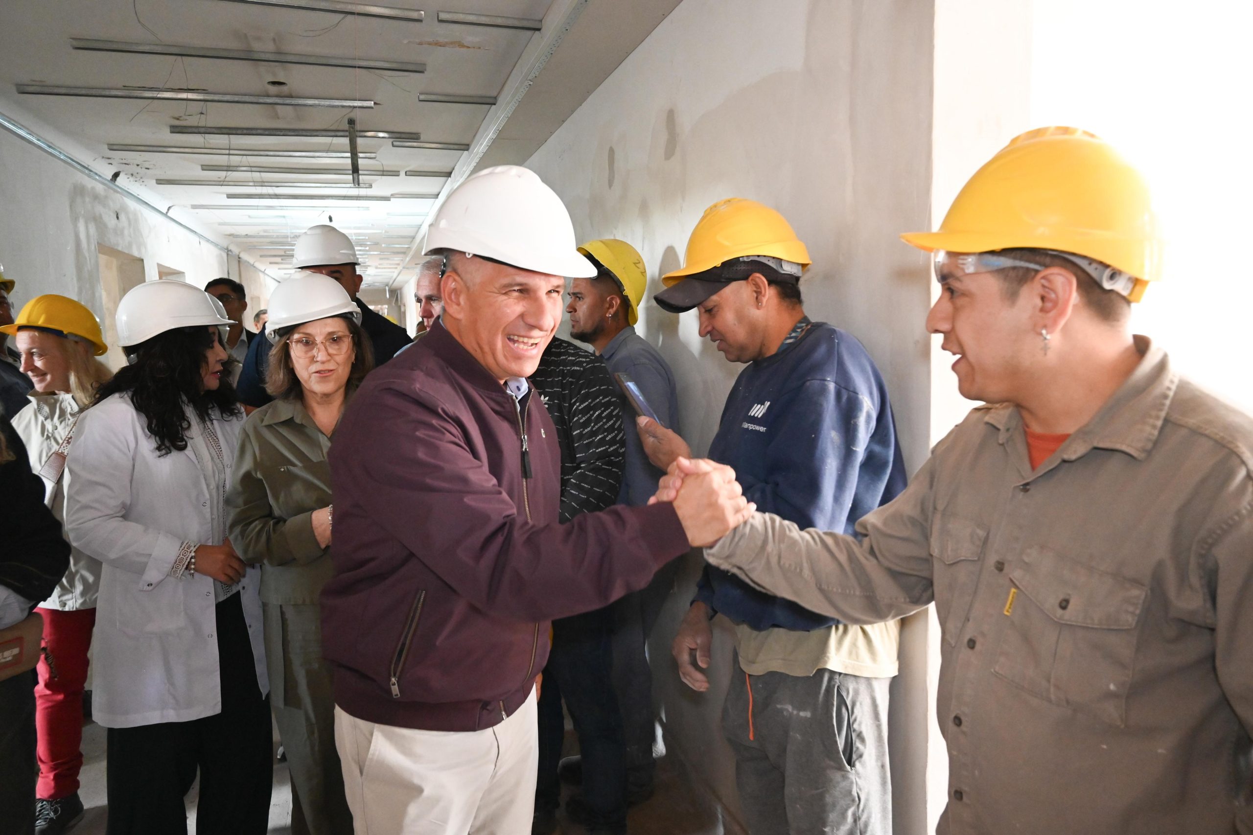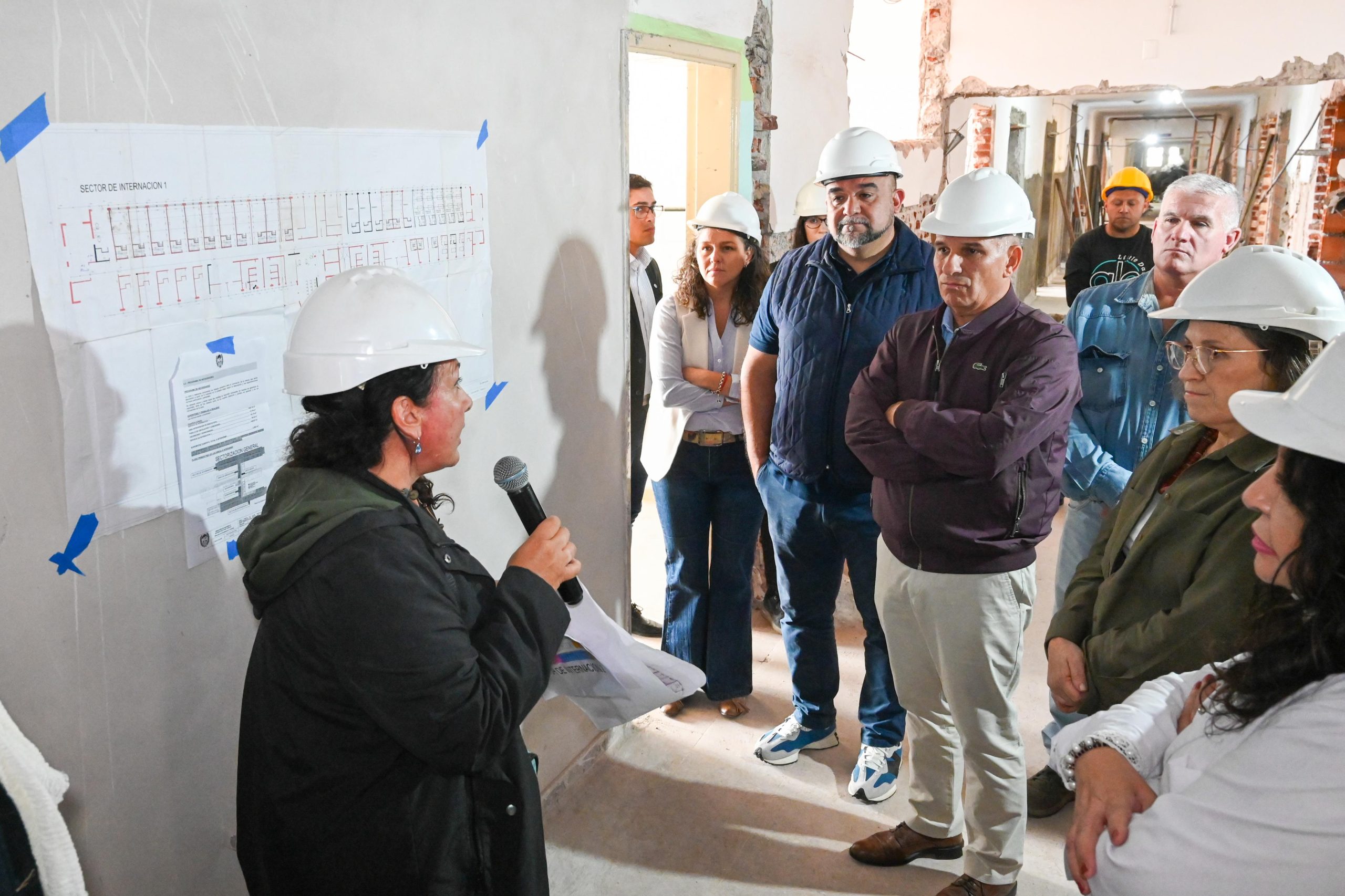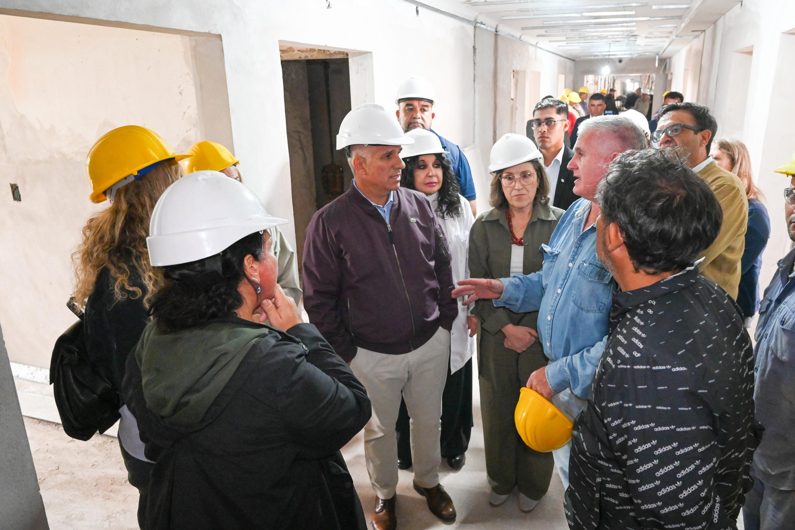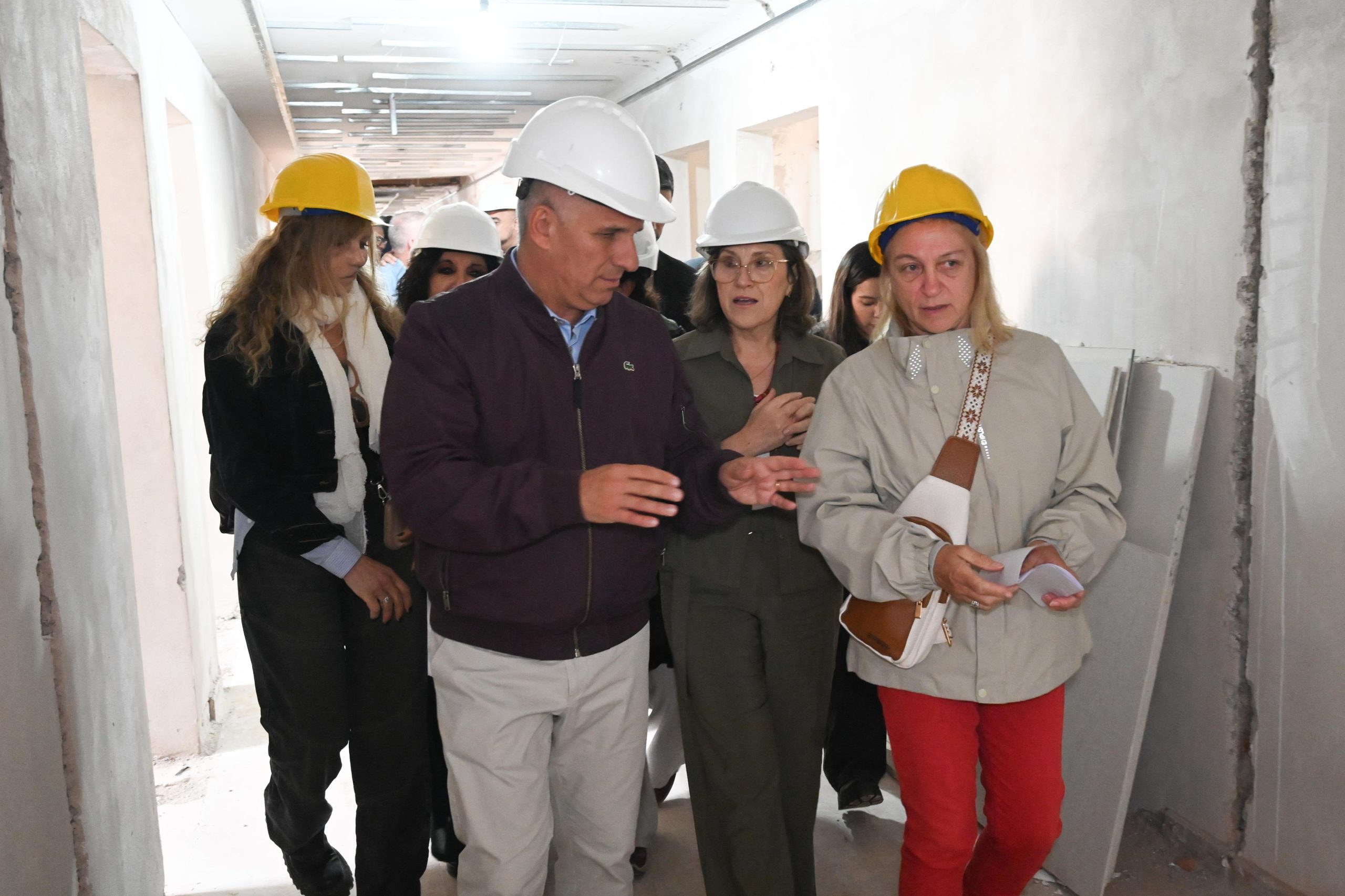 A continuación, la comitiva recorrió la obra, que tiene un 25% de avance y se centra en la refacción de los Servicios de Internación 1 y 2, incluyendo el sector de aislados, el sector de terapia intermedia, la construcción de una nueva sala de espera para ambos y una nueva área de Intervención de Endoscopia.