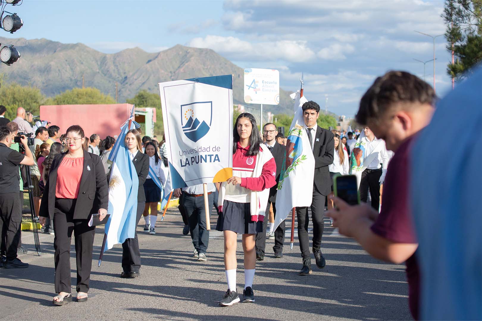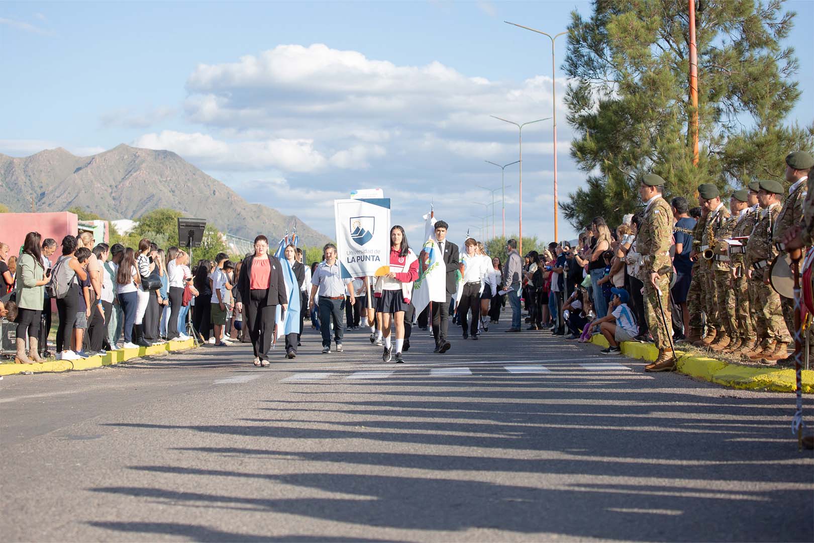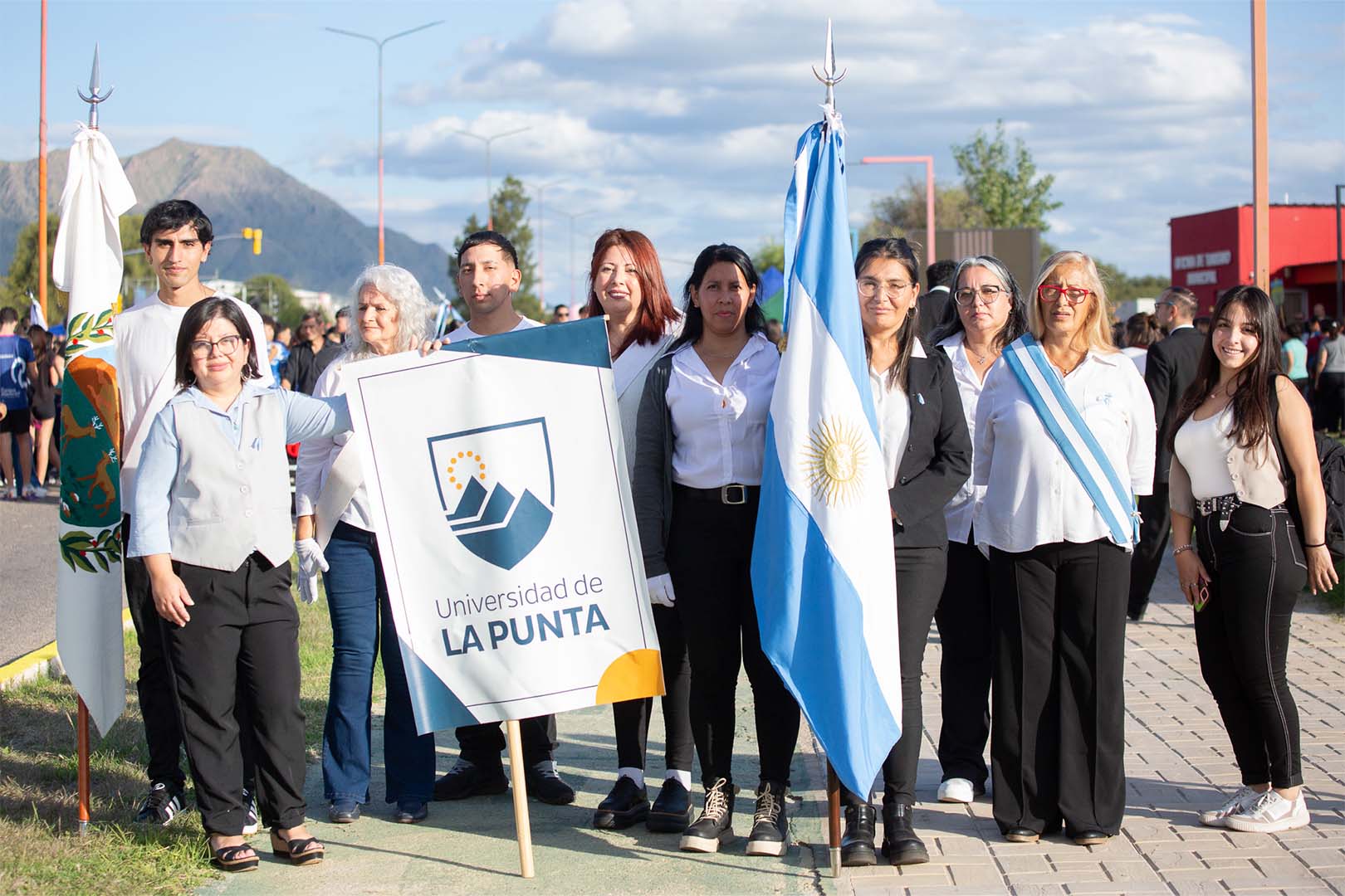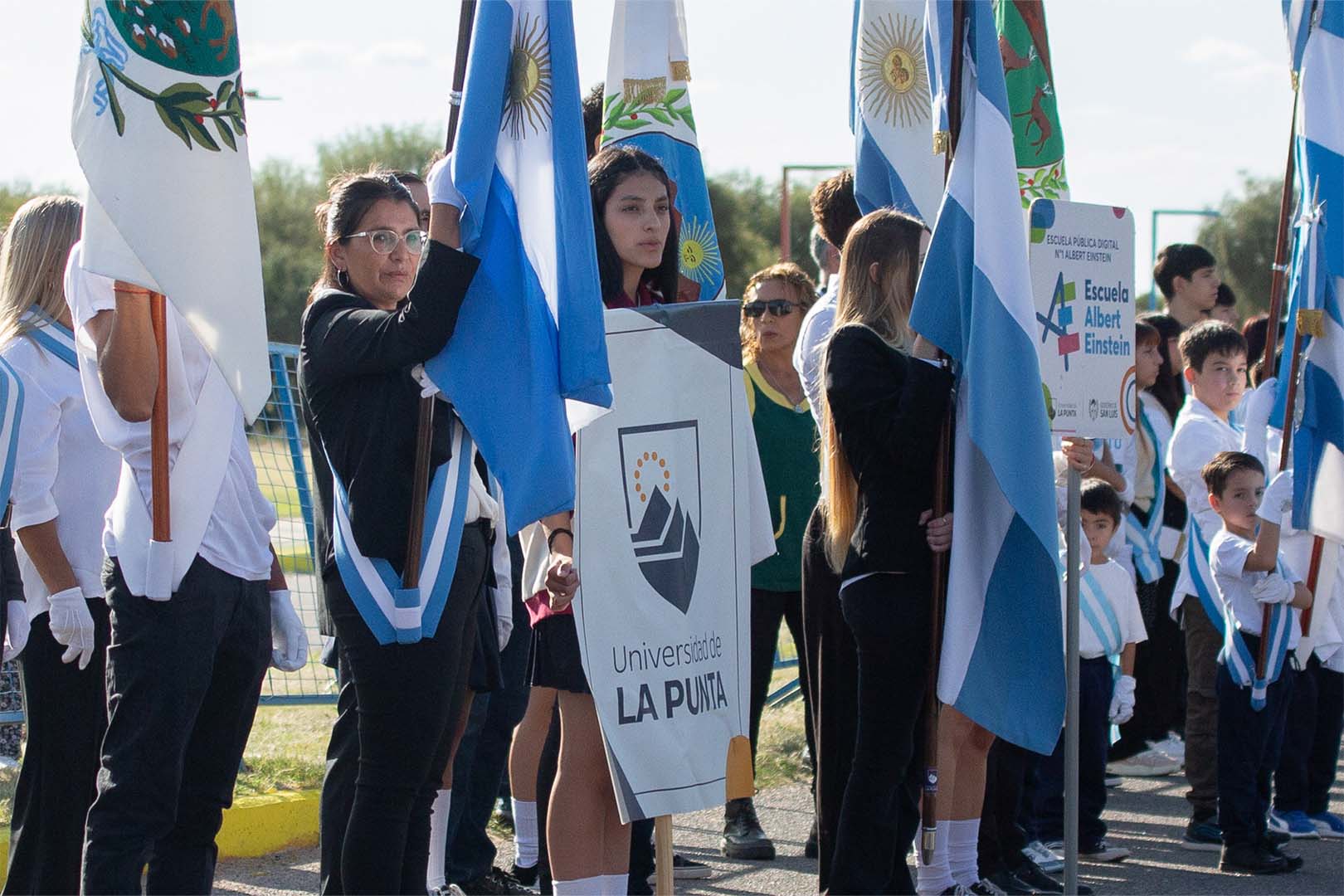 Estudiantes y docentes de los distintos niveles educativos, en compañía del personal no docente, representaron a la institución superior a lo largo de la avenida Serrana en el festejo del 23° aniversario de la ciudad de La Punta. También desfilaron escuelas primarias y secundarias, asociaciones civiles y efectivos del Ejército Argentino, incluido el histórico cuerpo de Granaderos a Caballo.
