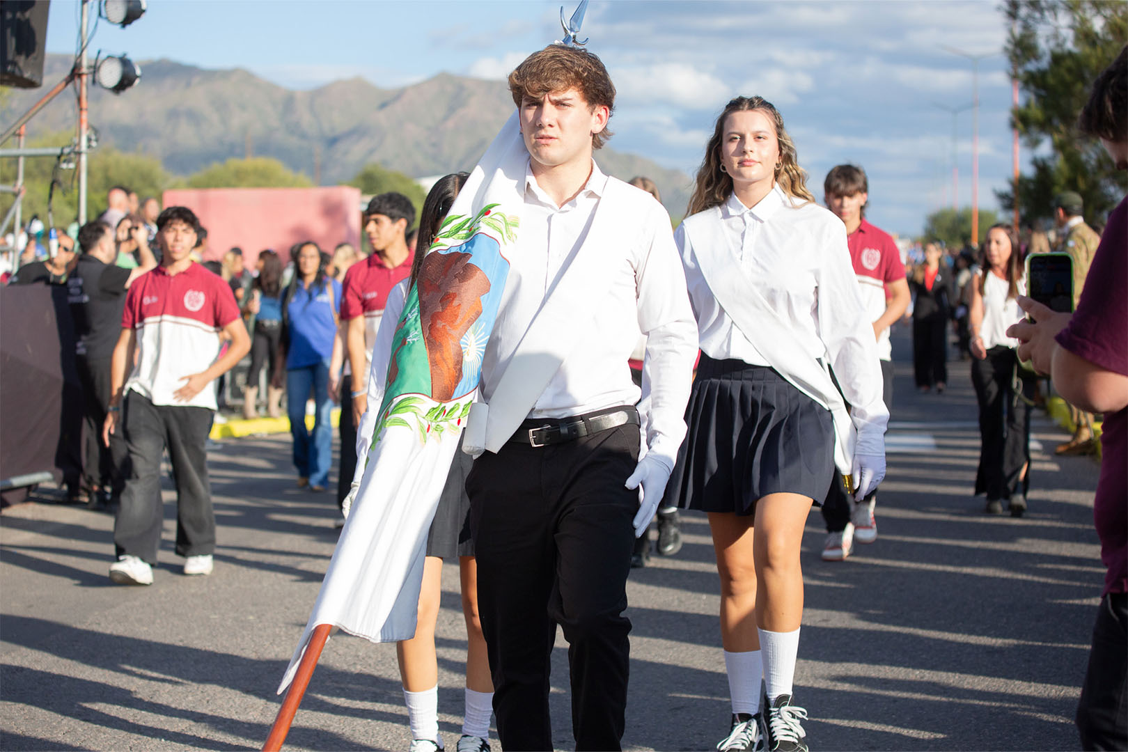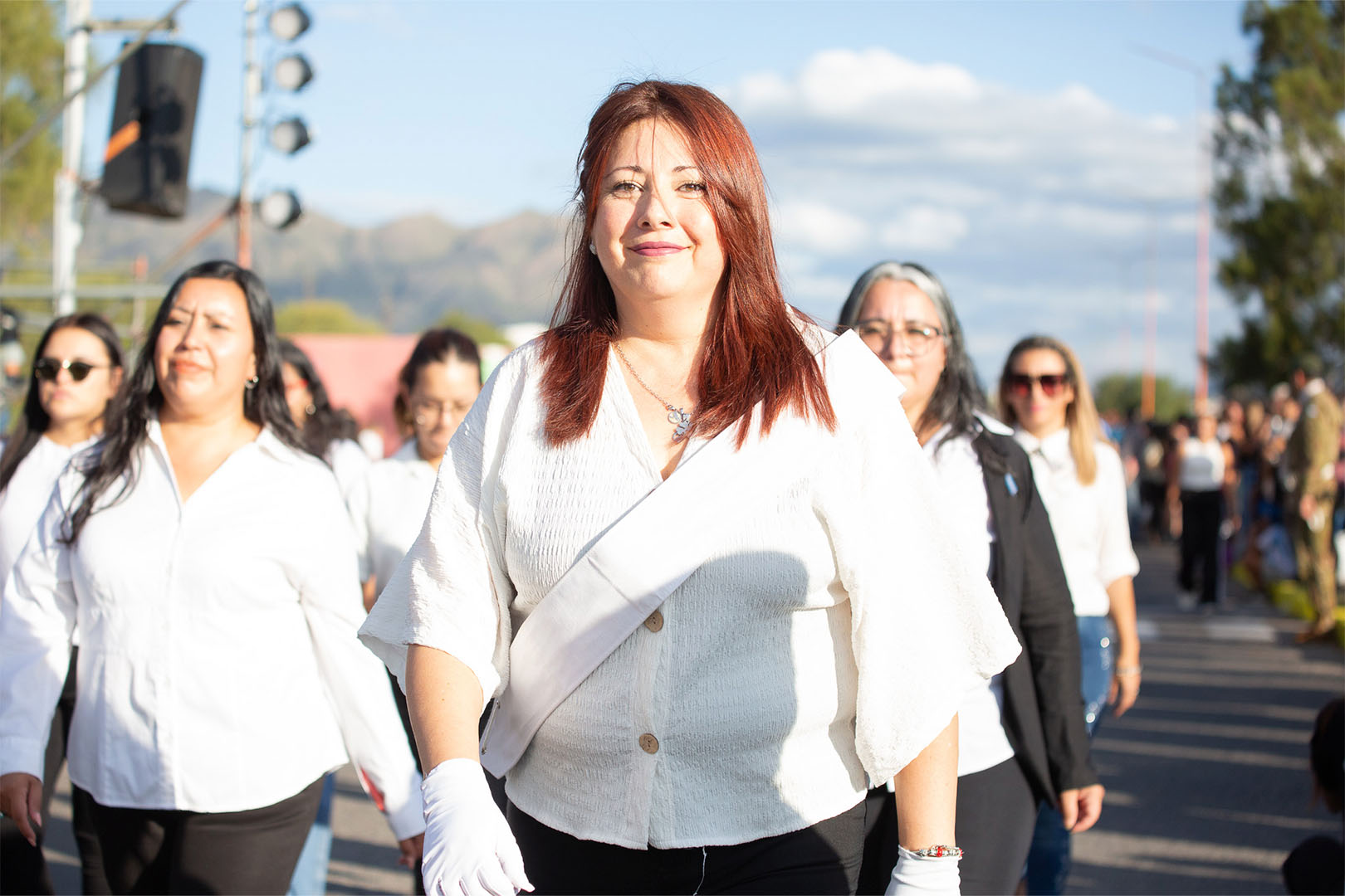 “Desfilar para nosotros es una demostración de carácter, y en cada paso, reafirmamos que se puede aprender a cualquier edad”, expresó María Celeste Miranda, abanderada de la Escuela Pública Digital de Adultos.