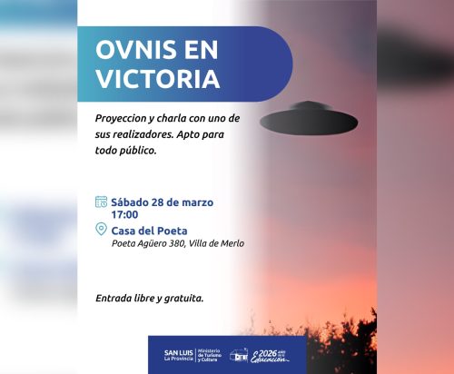 Este sábado 28, a las 17:00, se realizará la proyección del documental “Ovnis en Victoria”. Este audiovisual, realizado para la señal Infinito, narra múltiples hechos relacionados al fenómeno OVNI. La actividad contará con entrada libre y gratuita.