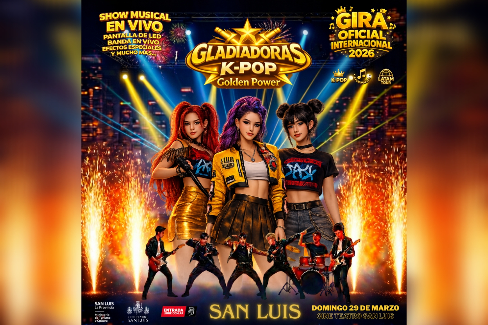 Como parte de su amplia gira nacional e internacional para este 2026, se presentará en San Luis capital ‘Gladiadoras K-Pop: Golden Power’, una ambiciosa producción para toda la familia que busca transformar la experiencia de los conciertos en vivo de un género que es furor en todo el mundo. El público local podrá disfrutar la función este domingo 29, a las 18:00, en el Cine Teatro San Luis.