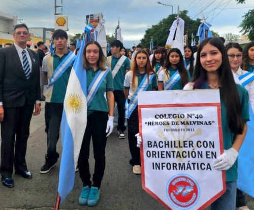 Por su parte, entre las escuelas técnicas que marcharon, se encontraba la N°7 ‘Manuel Sadosky’, la N°4 ‘Fray Luis Beltrán’, la N°5 ‘Ingeniero Álvarez Condarco’ y la N°8 ‘Mauricio Pastor Daract’. Mientras que los nombres del Instituto Superior ‘Islas Malvinas’ y del Colegio N°40 ‘Héroes de Malvinas’ cobraron un significado aún más profundo al conmemorarse el 44° aniversario de la gesta.
