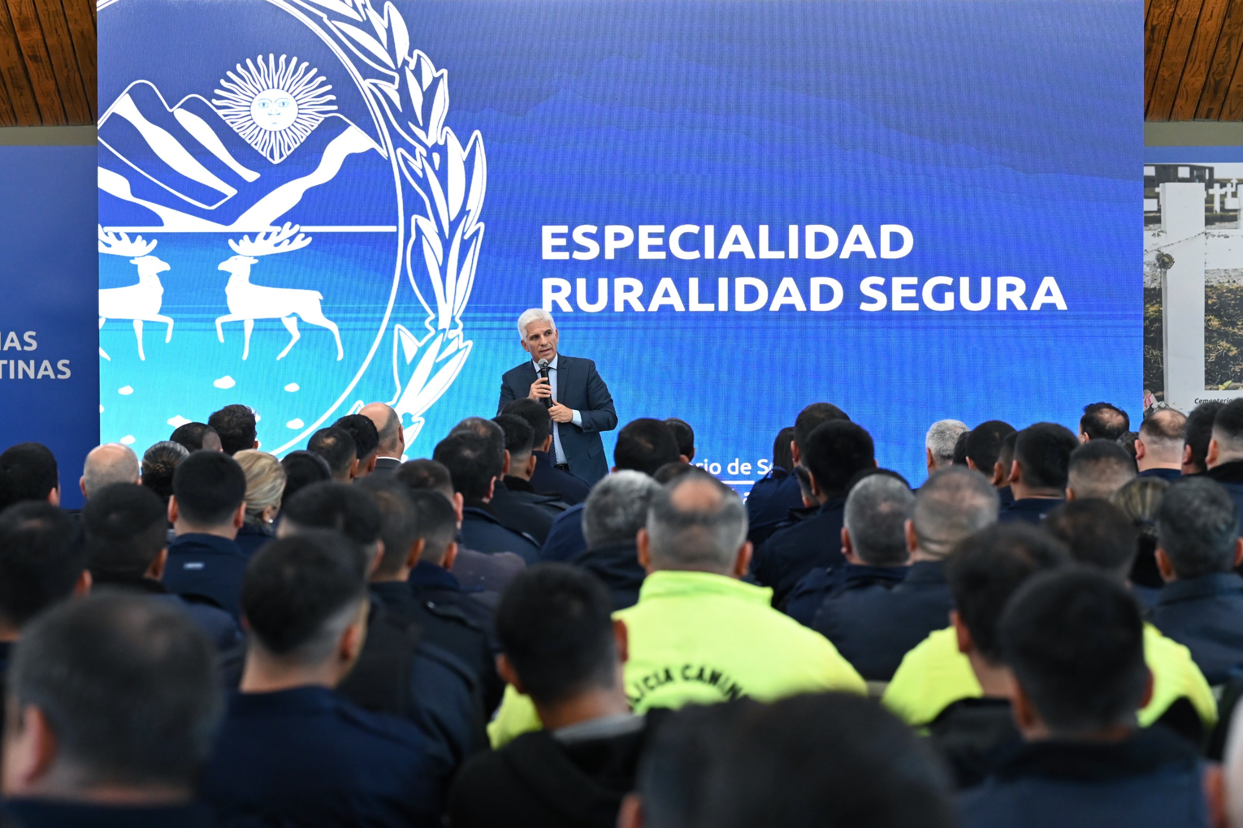 Reafirmó que la ruralidad debe ser una especialización y dio ejemplos: “Hay que conocer los movimientos rurales, conocer los animales, conocer cómo se hacen los alambrados. Todo lo que significa con la ruralidad es una especialidad, y hoy comenzamos con esa especialidad y, en paralelo, comenzamos también con un mayor equipamiento en cuanto a la movilidad, adaptado y focalizado a la ruralidad. Estoy contento porque nos escuchamos, conversamos, y quiero que sepan que estamos en el mismo barco. Yo estoy del lado de la seguridad, siempre con la ley y la Constitución en las manos”.