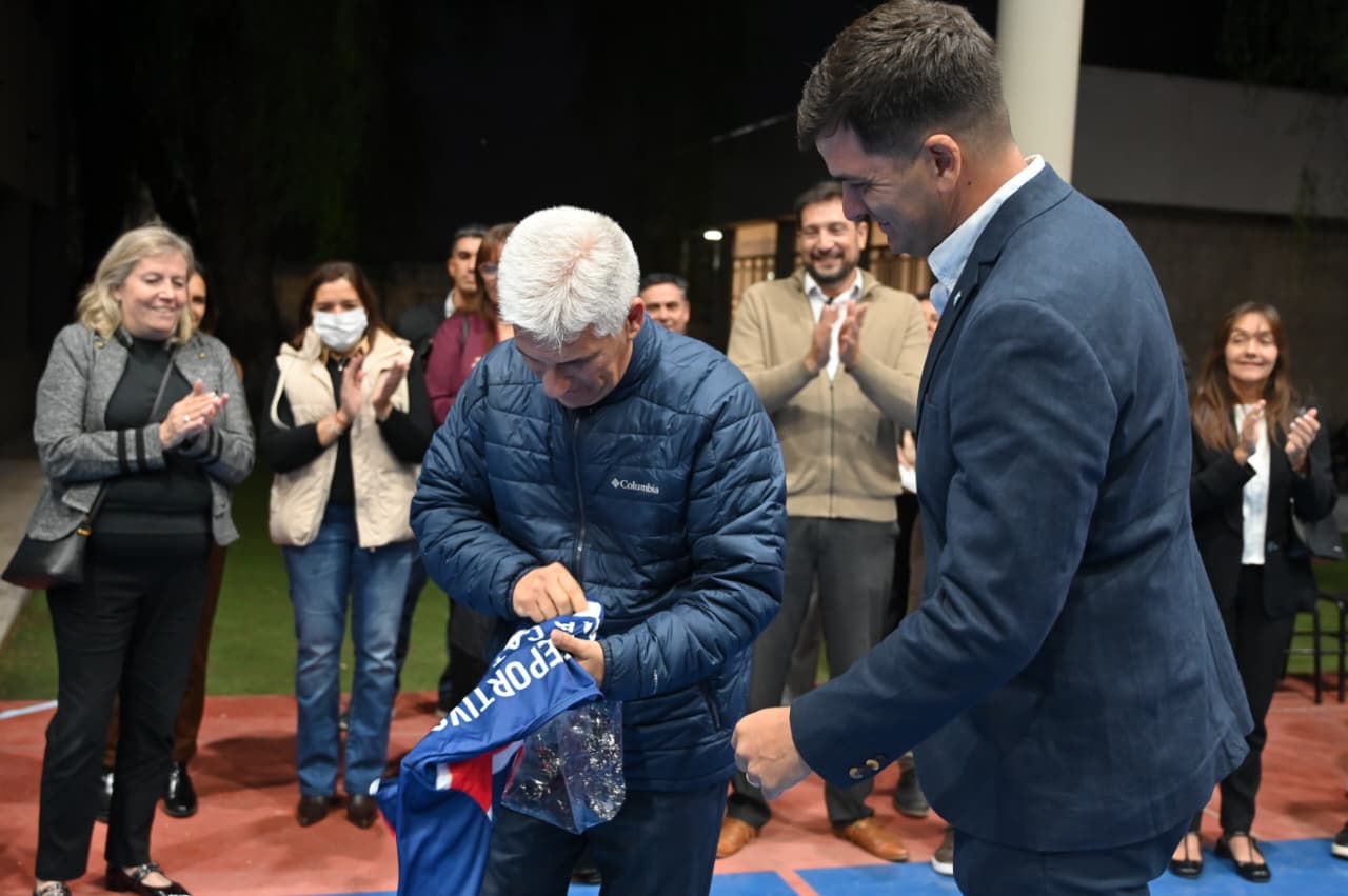 En reconocimiento al acompañamiento brindado, el Gobernador recibió de manos del tesorero del ISC, Juan Manuel Fiorito, una camiseta personalizada con el número 10. El gesto dio paso a un breve mensaje de Poggi, quien destacó la importancia del programa y el compromiso de quienes lo llevan adelante. “La verdad que le estamos poniendo mucho amor a este programa ‘Creciendo con tu Club’. El nombre dice todo: que los chicos vayan creciendo con el club, nuestros niños, nuestros adolescentes o están en la escuela, están haciendo la tarea o se están recreando sanamente o tienen que estar en el club haciendo actividad física o cultural deportiva y el programa ‘Creciendo con tu Club’ apunta a eso, al desarrollo del deporte infanto-juvenil, desde los 6 años o menos, como vi recién, hasta las 16”, afirmó el Gobernador.