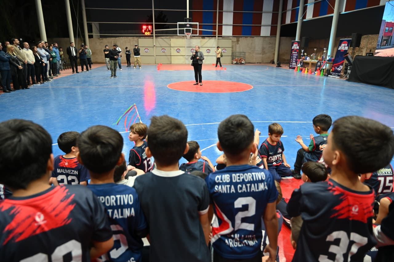 El gobernador Claudio Poggi encabezó la inauguración del playón deportivo del Club Santa Catalina, una obra concretada a través de ‘Creciendo con tu Club’. La iniciativa impulsa el fortalecimiento de los espacios barriales en toda la provincia.