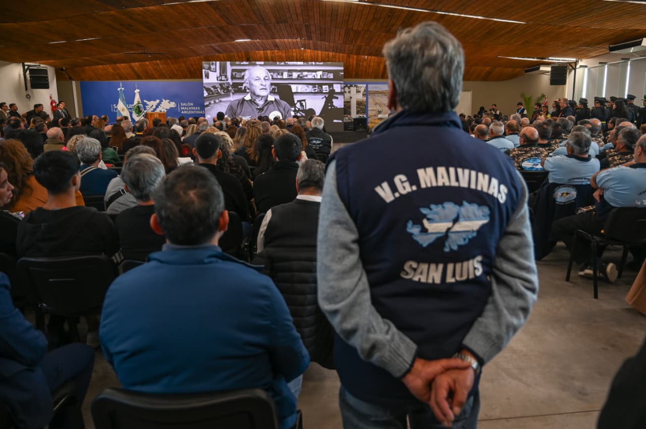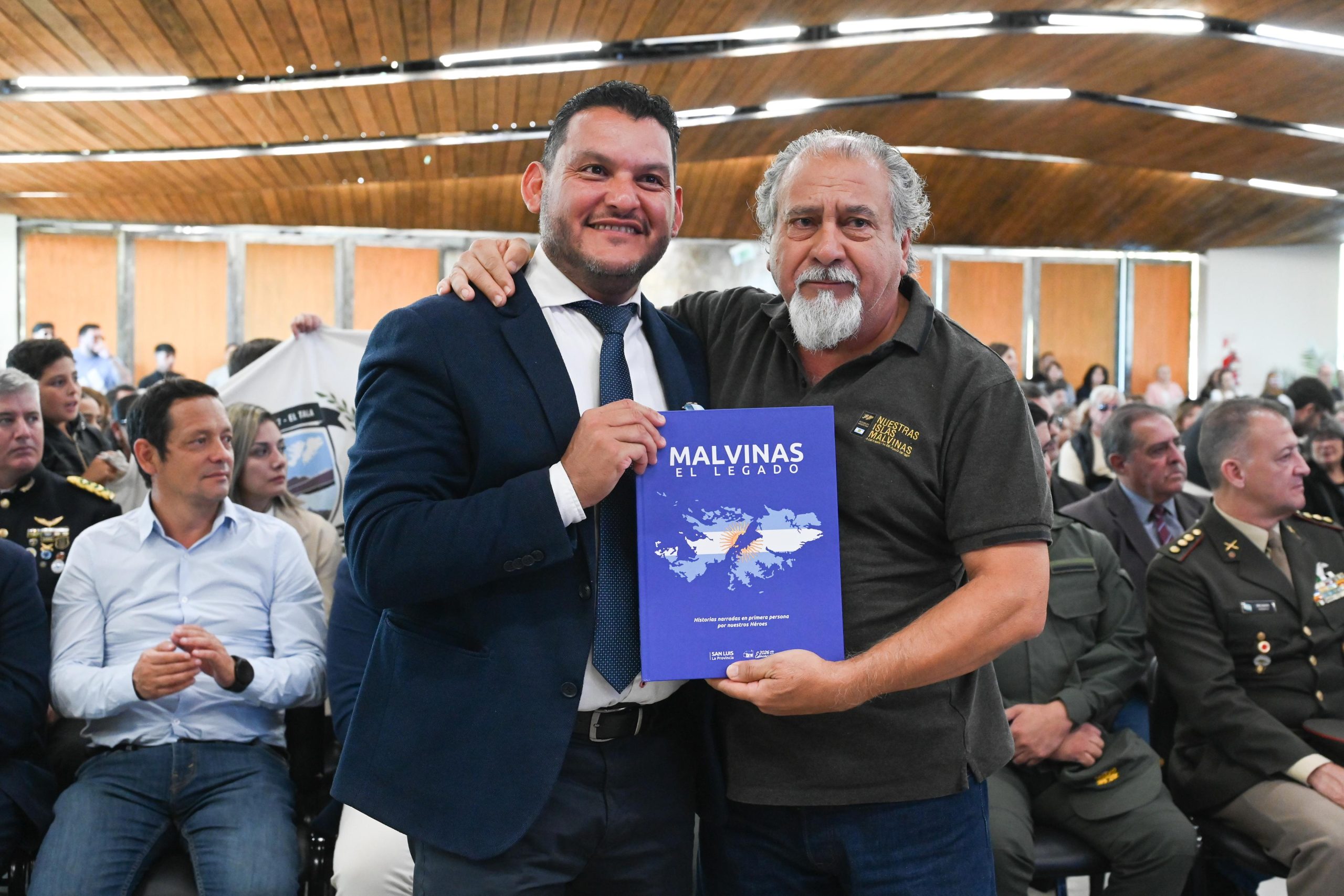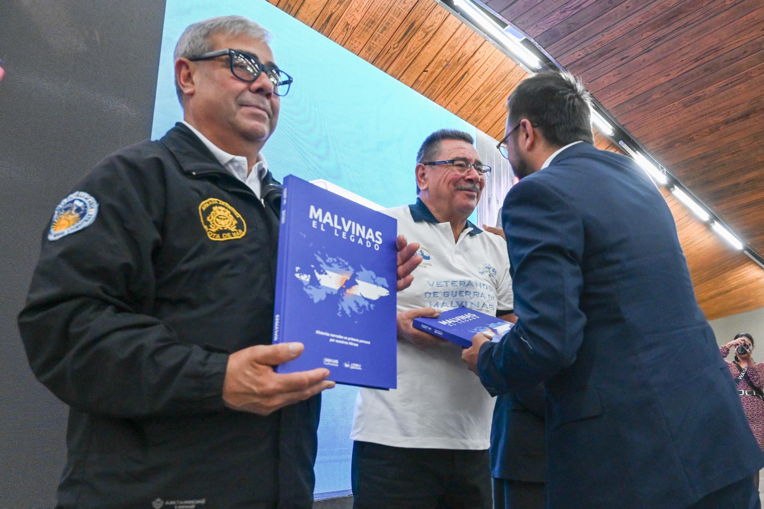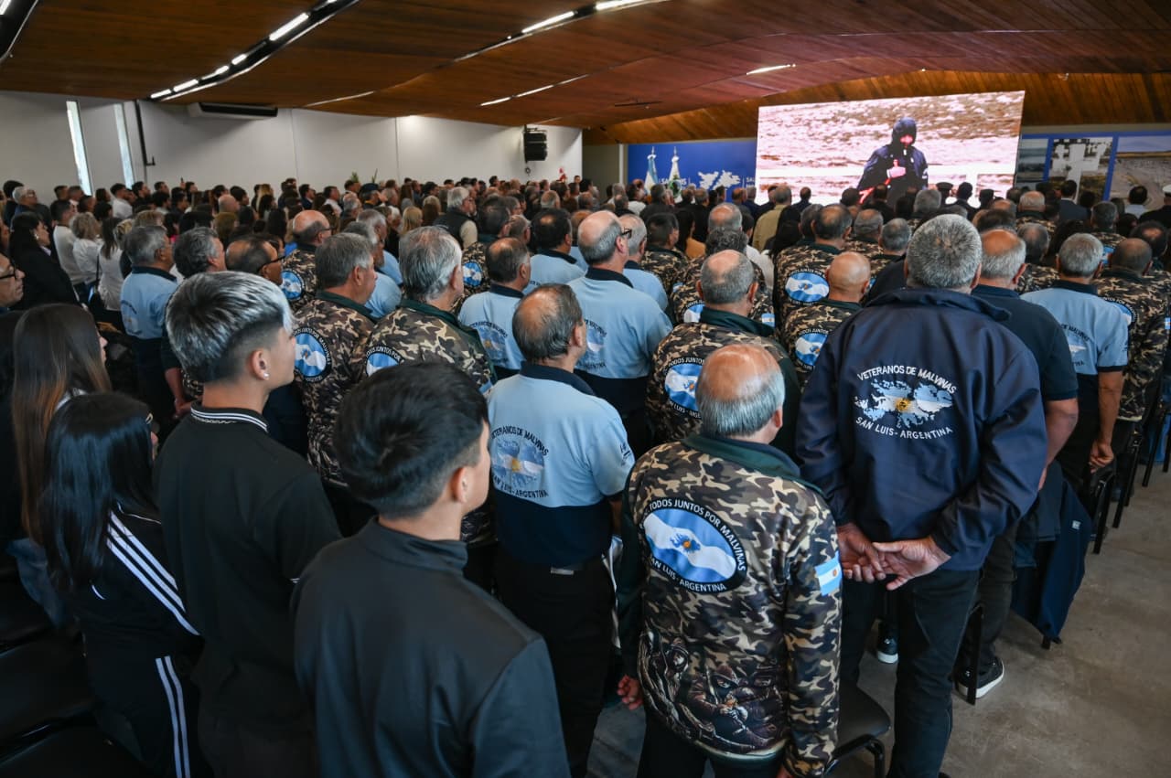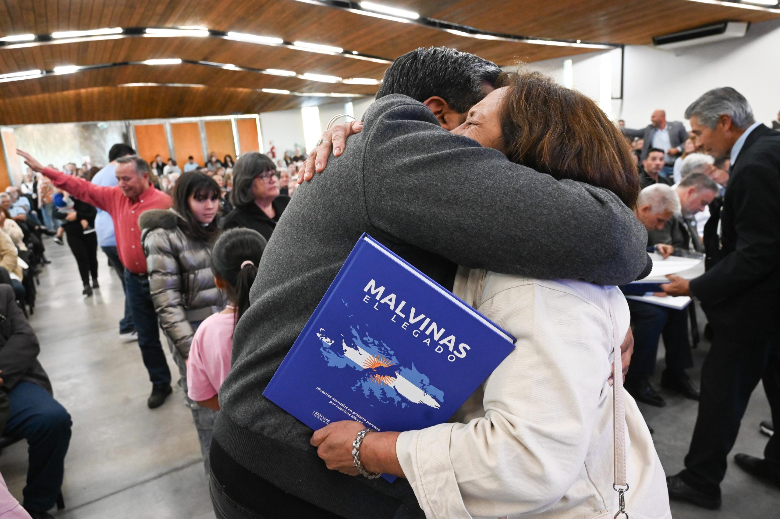 Este martes, en un Salón Malvinas repleto, el gobernador Claudio Poggi presentó el libro ‘Malvinas, El Legado’. Entre lágrimas, abrazos y memoria, la comunidad de San Luis demostró una vez más que mantiene viva la misión de malvinizar y reconocer la gesta patriótica de los veteranos que dejaron sangre, sudor y en algunos casos hasta la vida por defender la Patria.
