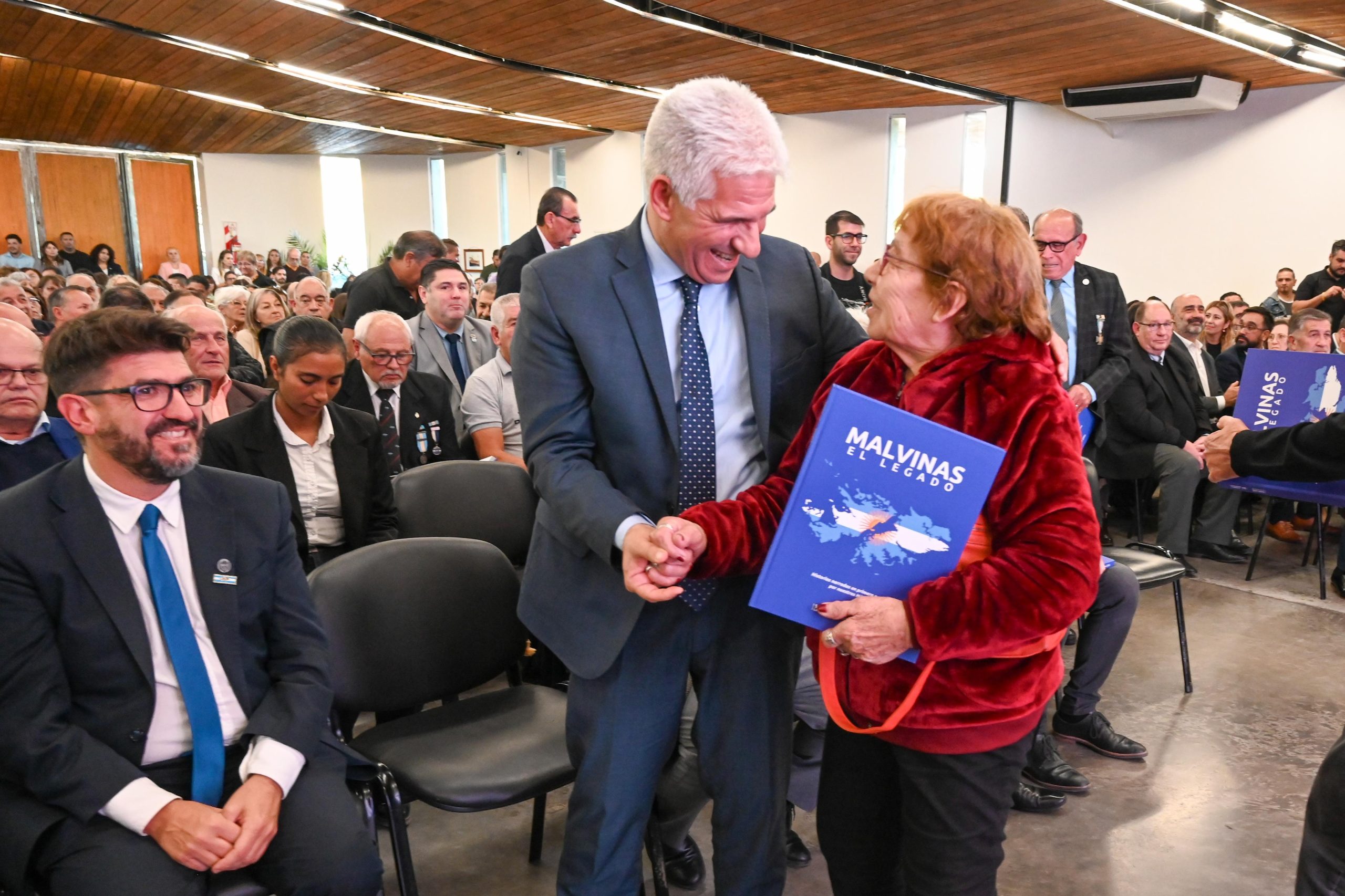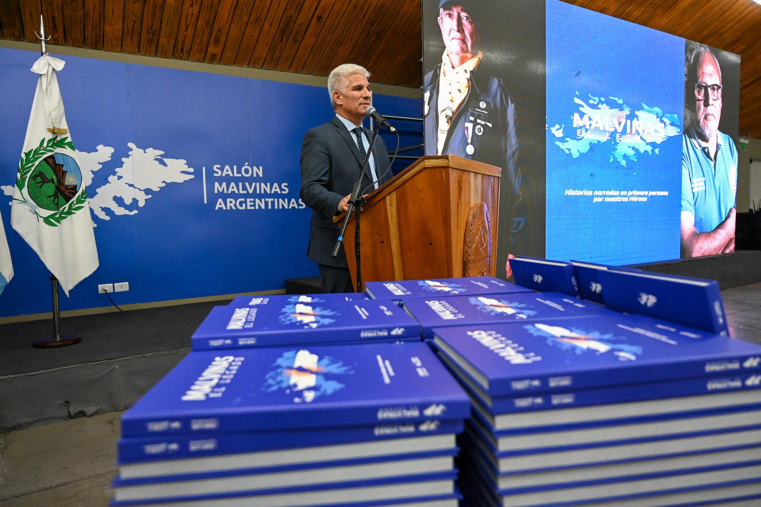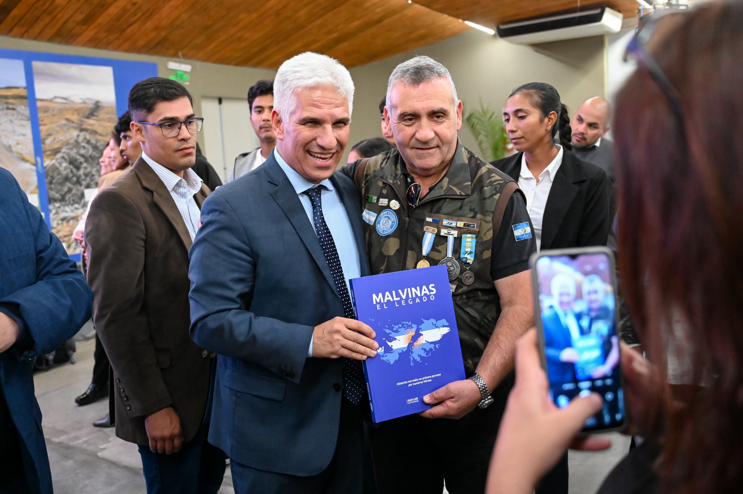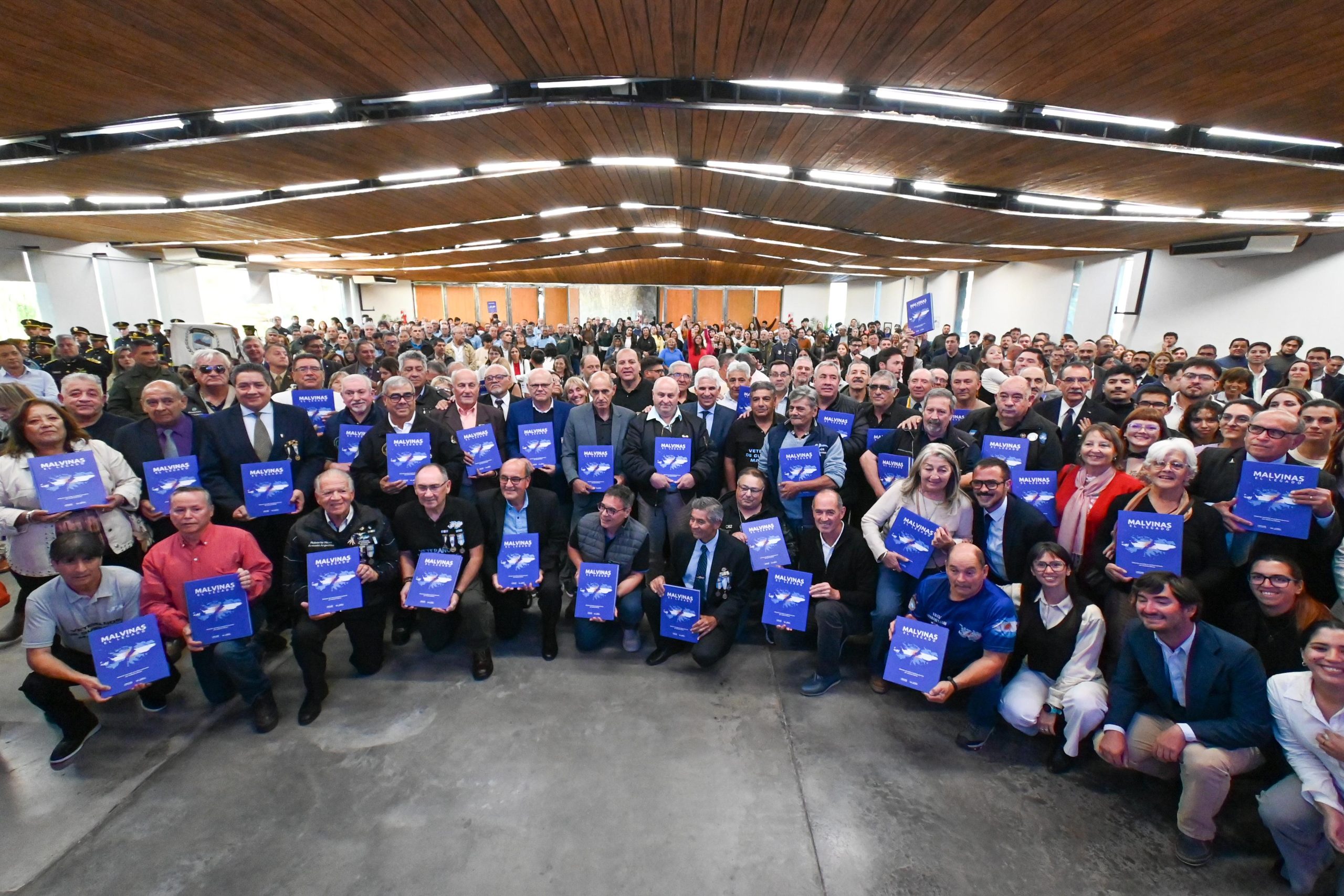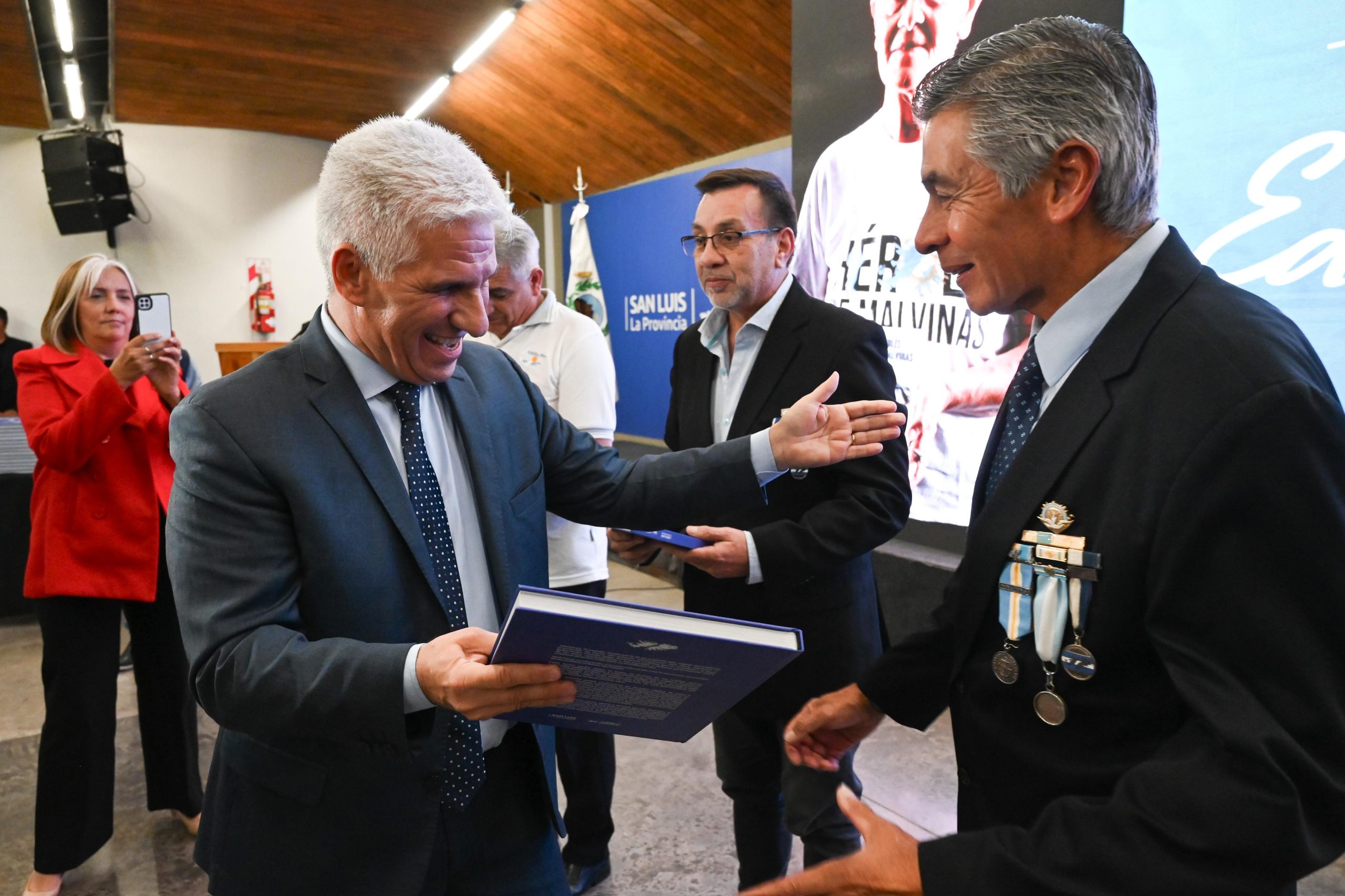 Este martes, en un Salón Malvinas repleto, el gobernador Claudio Poggi presentó el libro ‘Malvinas, El Legado’. Entre lágrimas, abrazos y memoria, la comunidad de San Luis demostró una vez más que mantiene viva la misión de malvinizar y reconocer la gesta patriótica de los veteranos que dejaron sangre, sudor y en algunos casos hasta la vida por defender la Patria.