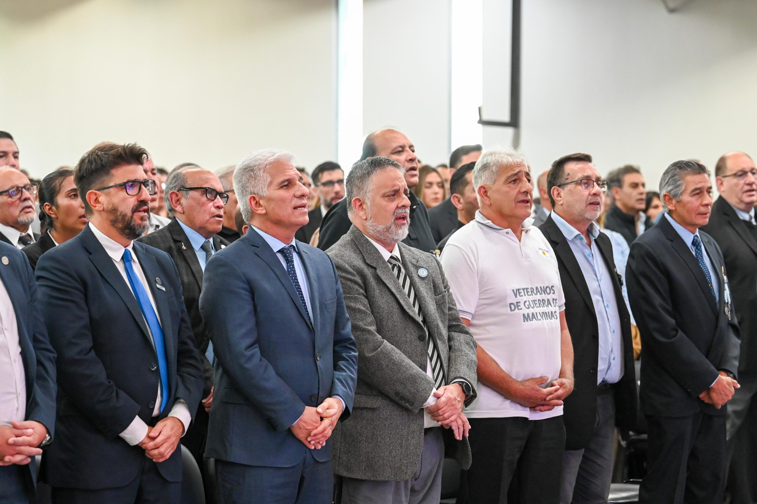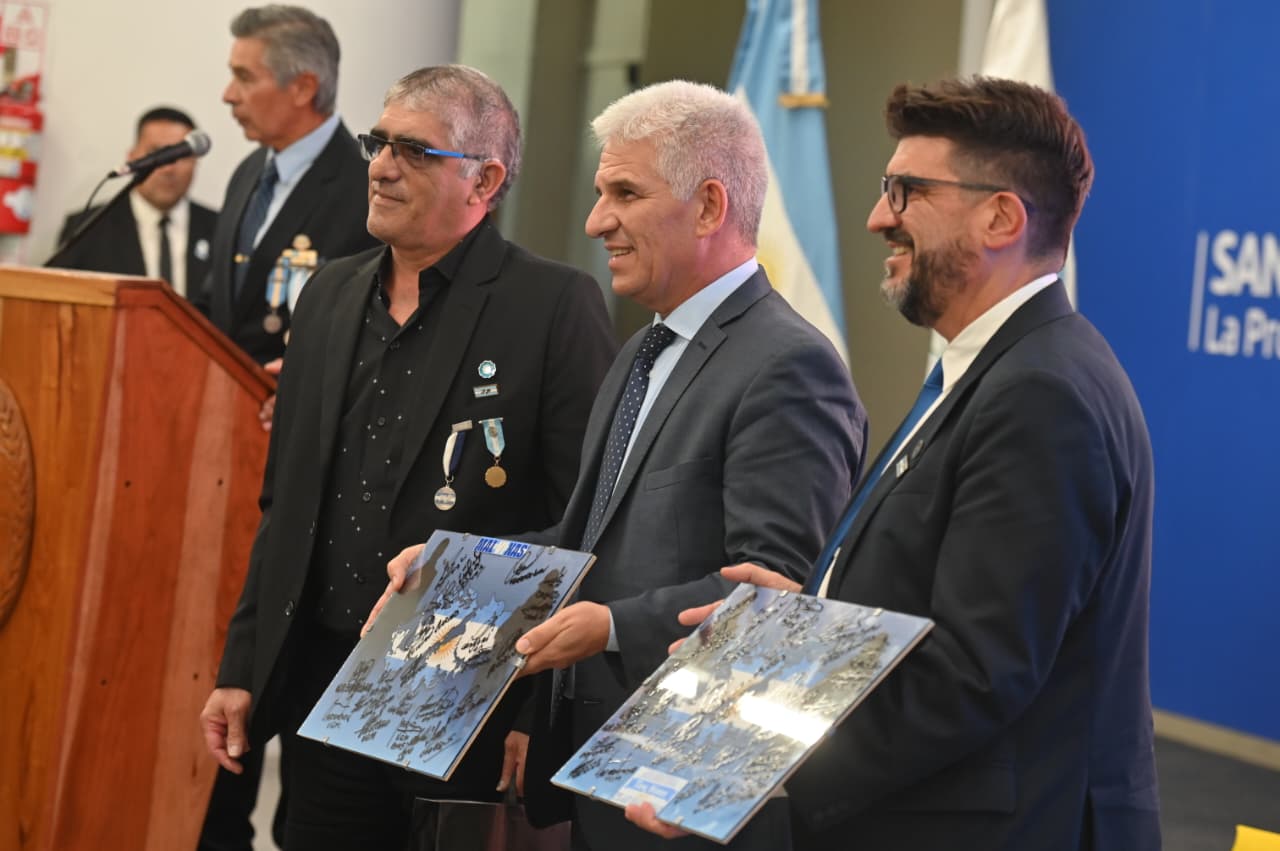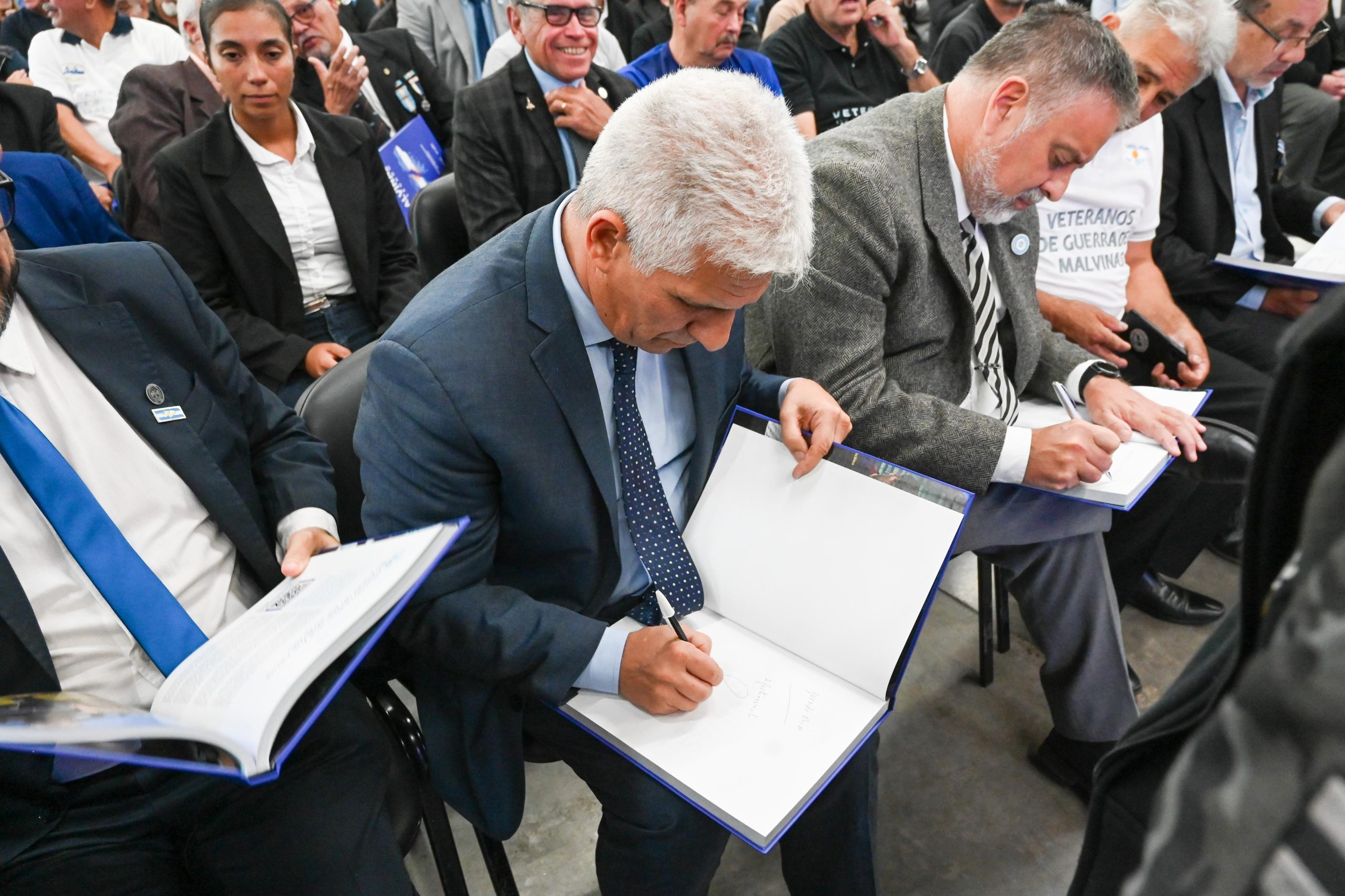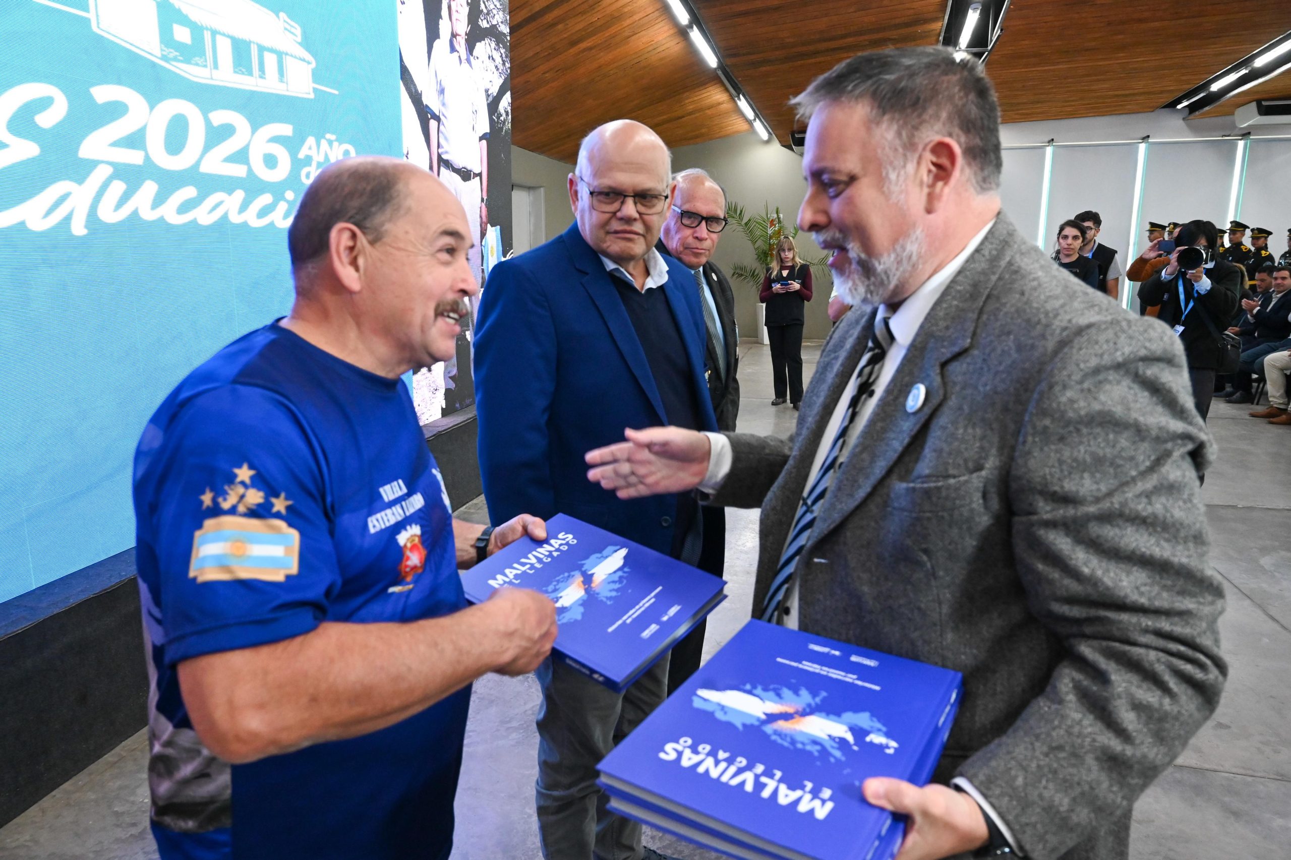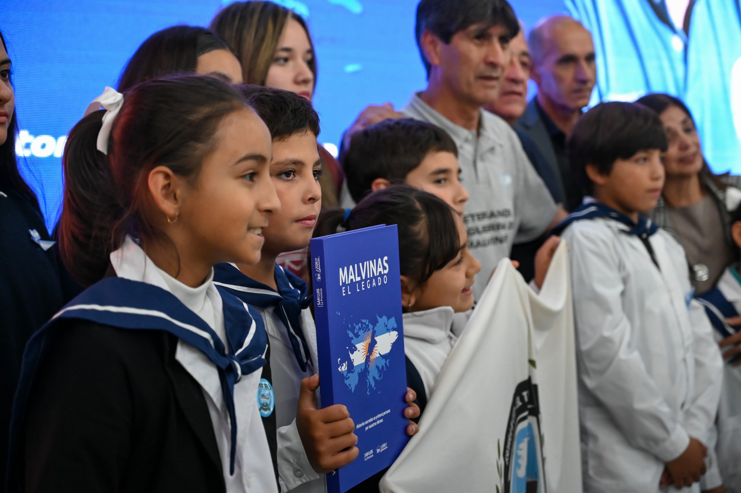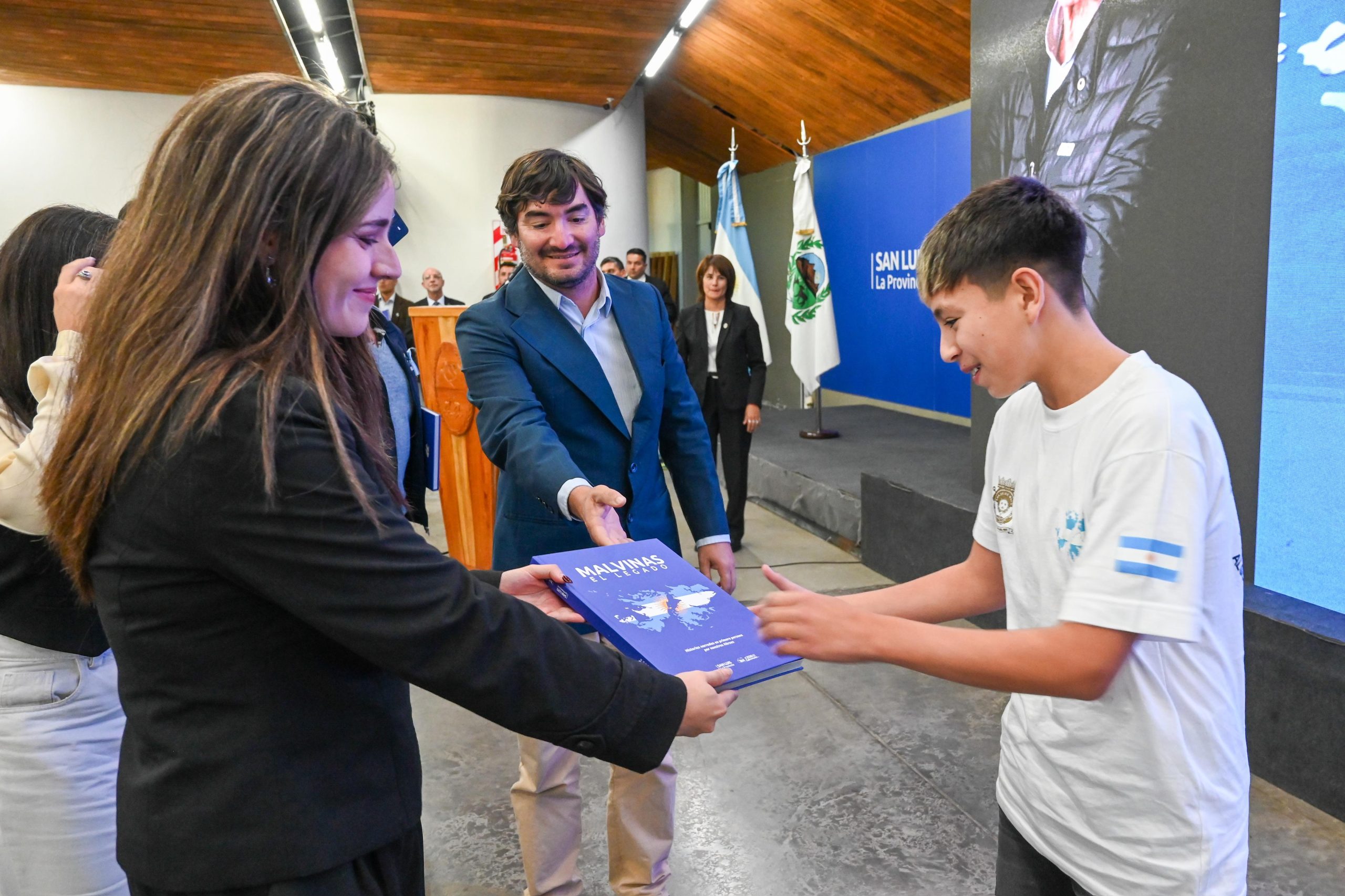 Este martes, en un Salón Malvinas repleto, el gobernador Claudio Poggi presentó el libro ‘Malvinas, El Legado’. Entre lágrimas, abrazos y memoria, la comunidad de San Luis demostró una vez más que mantiene viva la misión de malvinizar y reconocer la gesta patriótica de los veteranos que dejaron sangre, sudor y en algunos casos hasta la vida por defender la Patria.