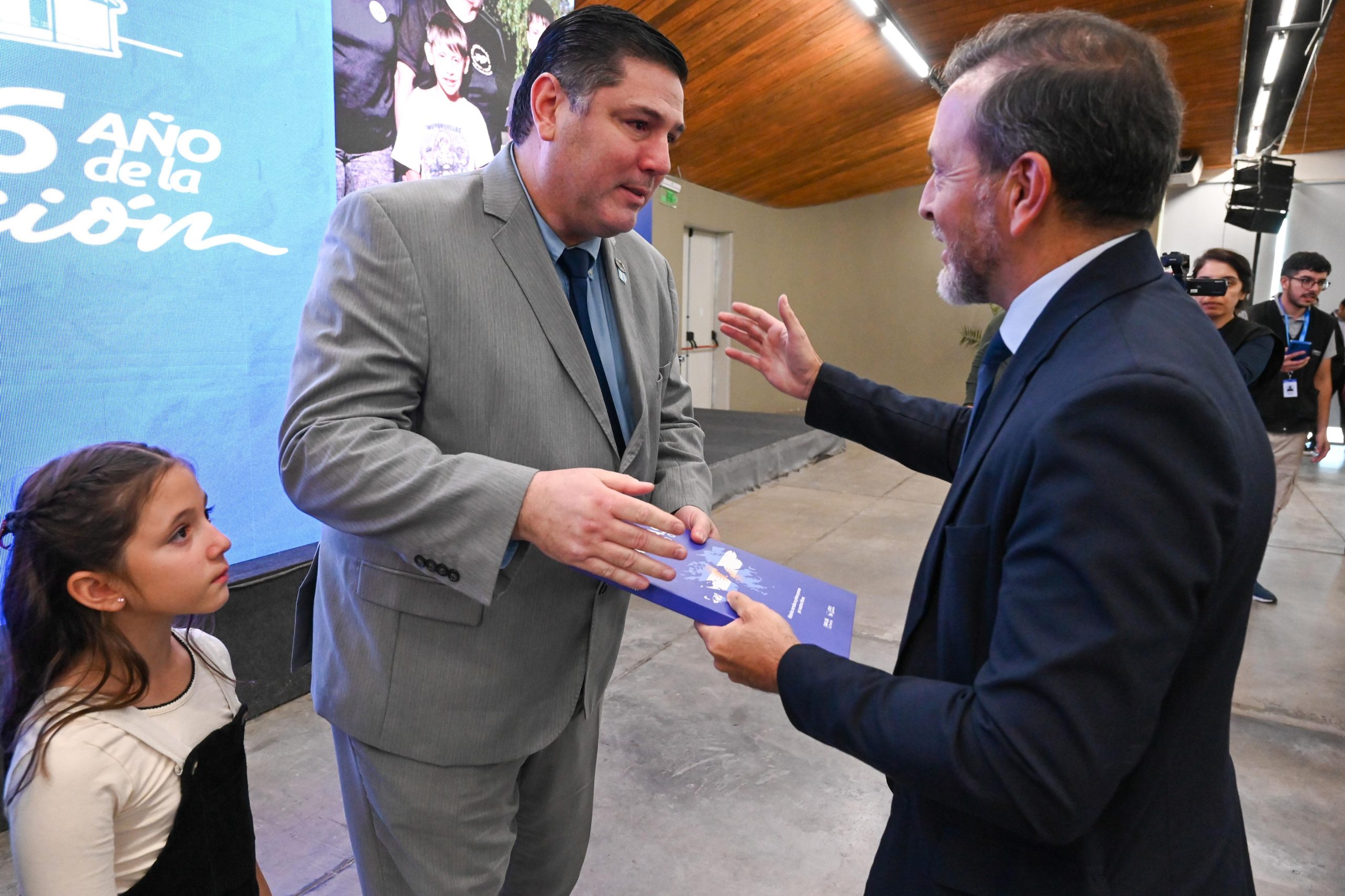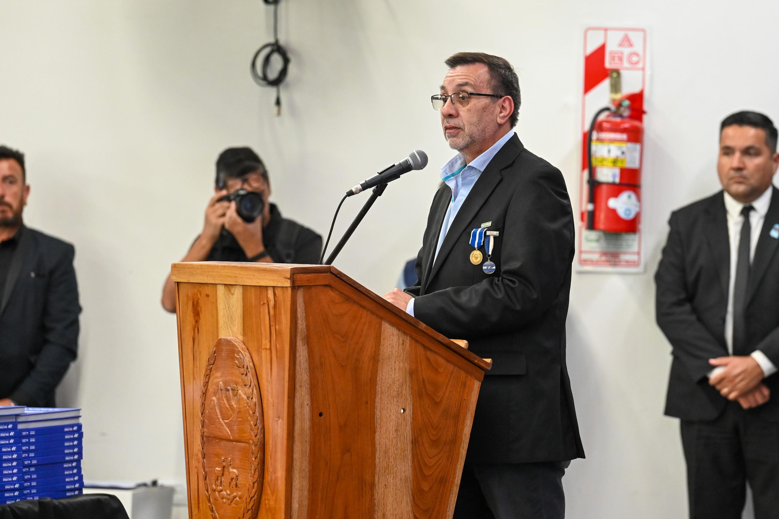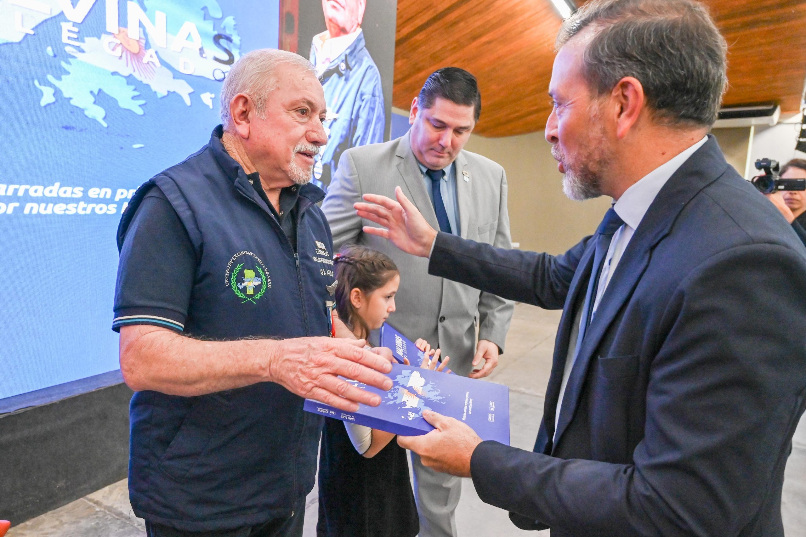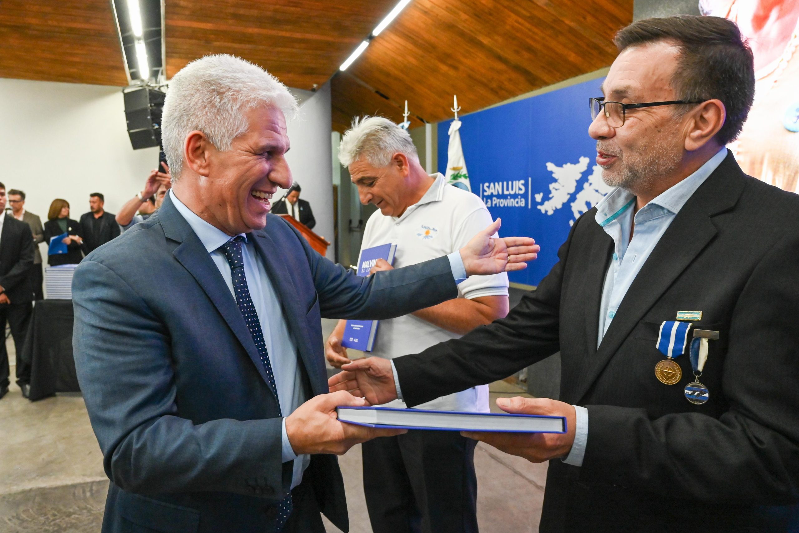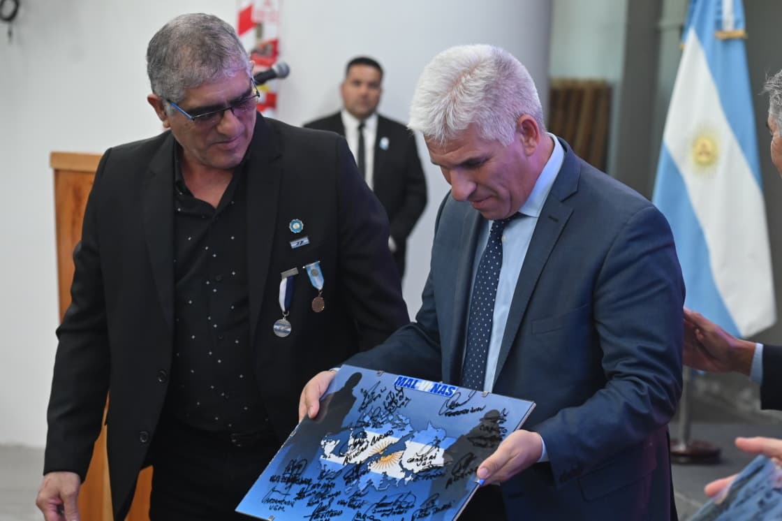 Este martes, en un Salón Malvinas repleto, el gobernador Claudio Poggi presentó el libro ‘Malvinas, El Legado’. Entre lágrimas, abrazos y memoria, la comunidad de San Luis demostró una vez más que mantiene viva la misión de malvinizar y reconocer la gesta patriótica de los veteranos que dejaron sangre, sudor y en algunos casos hasta la vida por defender la Patria.
