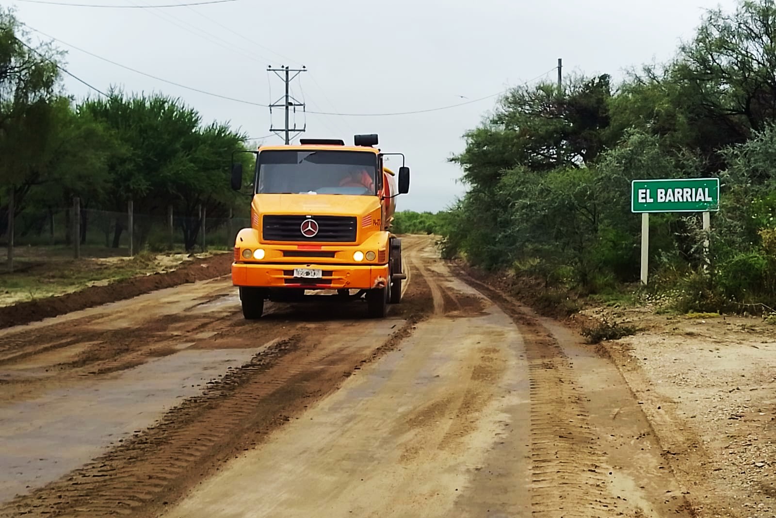 En la ruta provincial N°3, las tareas se concentraron en el perfilado de la traza y la consolidación del suelo mediante camiones de riego en el paraje El Barrial y la ex ruta 147, extendiéndose hasta Nogolí, en el departamento Belgrano. Los equipos permanecen en la zona con el objetivo de avanzar sobre otros caminos rurales.