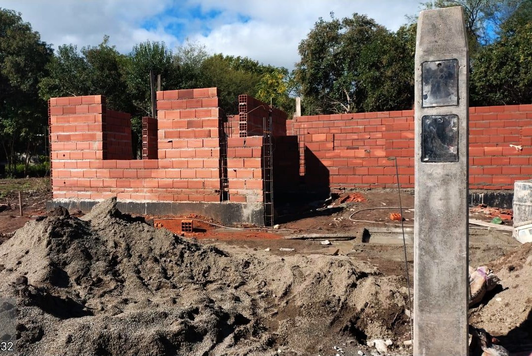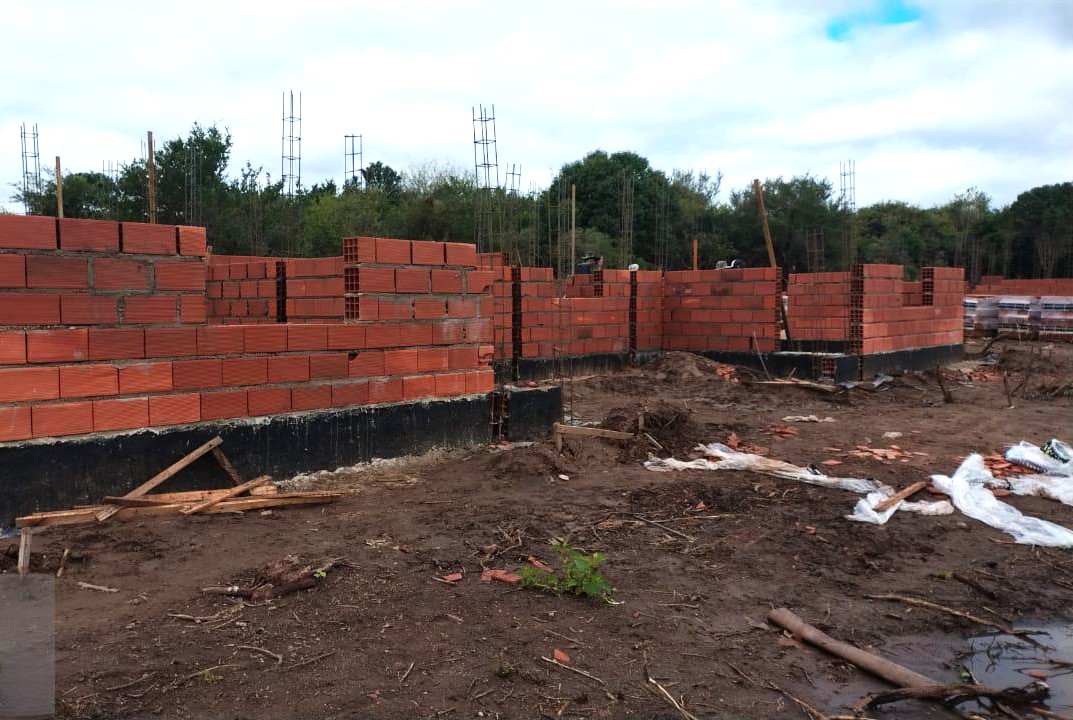 El levantamiento de muros permite definir la distribución de los distintos ambientes, consolidando el progreso de la obra gruesa, aunque resta completar su altura y avanzar en los encadenados superiores y la futura cubierta.
