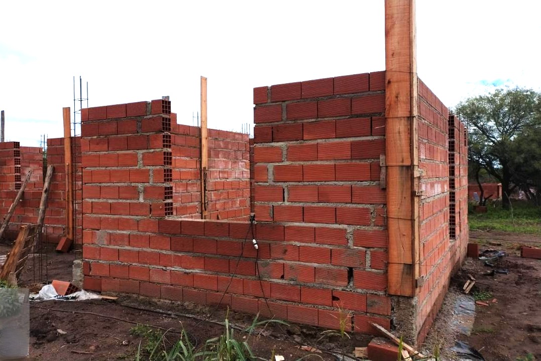 El organismo precisó que se trata de unidades habitacionales del programa ‘Tenemos Futuro’. Las obras se encuentran en una etapa intermedia, con la estructura portante y los cerramientos en pleno desarrollo. Ya fueron ejecutados los cimientos y sobrecimientos, sobre los cuales avanzan las paredes de ladrillo en altura parcial, aún sin alcanzar su nivel definitivo. En simultáneo, continúan las tareas en columnas de hormigón armado, con armaduras visibles y encofrados de madera dispuestos para su consolidación.
