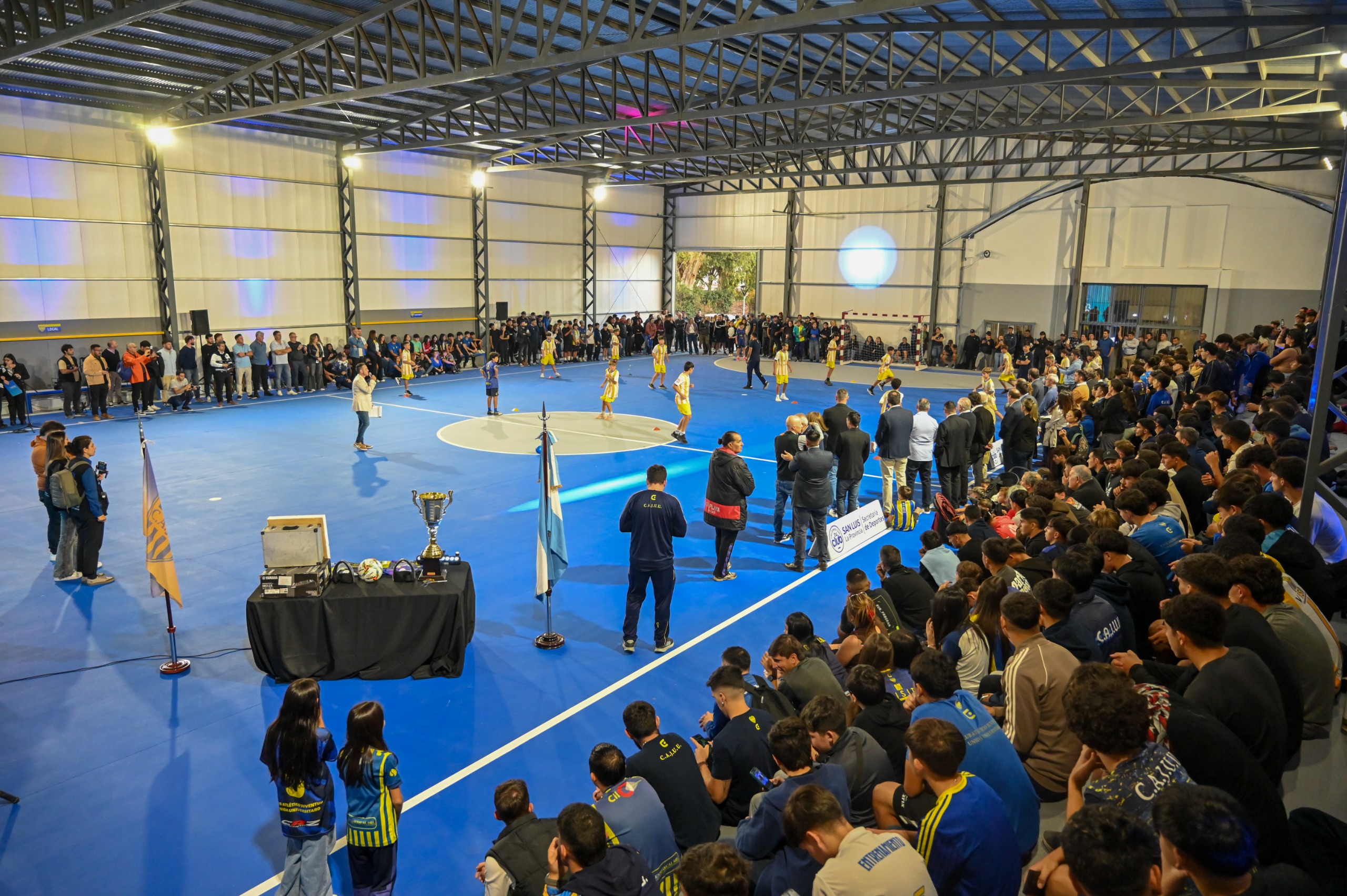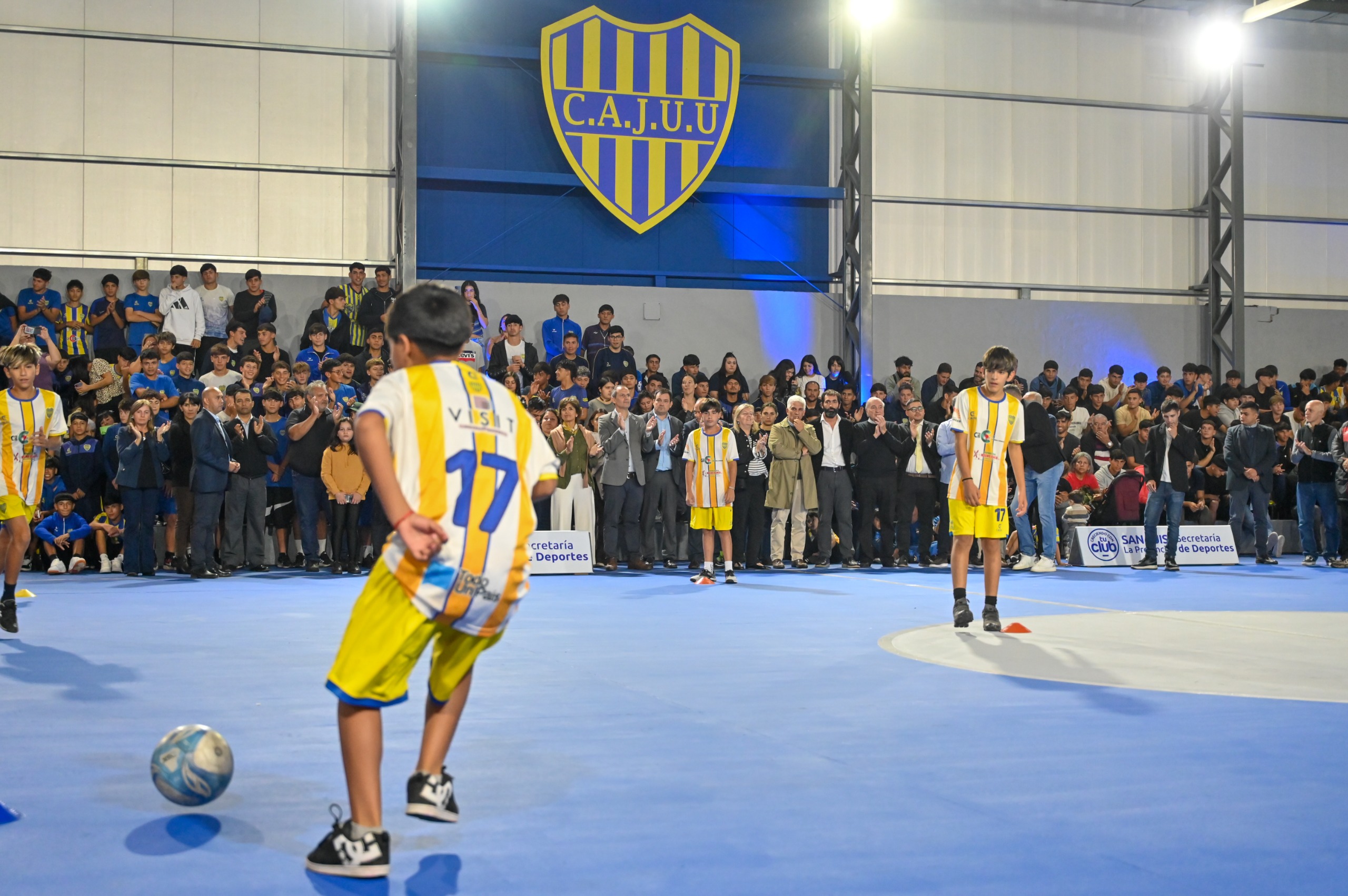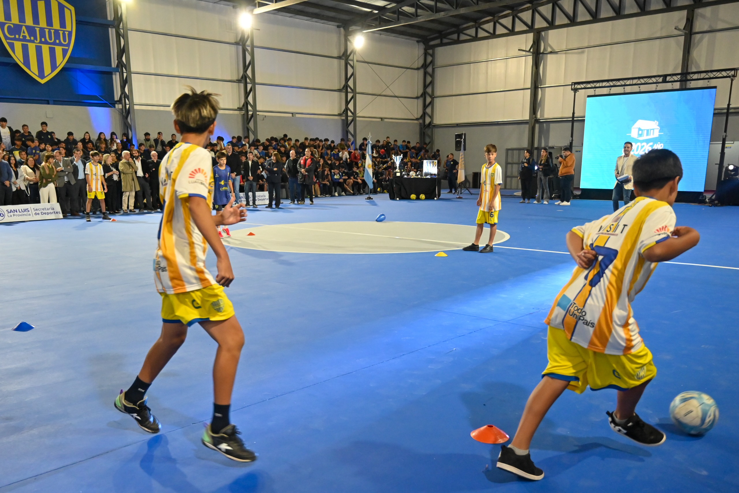 La ceremonia comenzó con una exhibición de los jóvenes de la categoría Sub-13 que integran el equipo de futsal de Juventud. Ante la atenta mirada del Gobernador, los chicos mostraron algunas maniobras habituales que realizan en los entrenamientos, enfocado en conceptos del juego y el perfeccionamiento de las habilidades técnicas, como el pase al compañero, el traslado con pelota y los controles orientados.