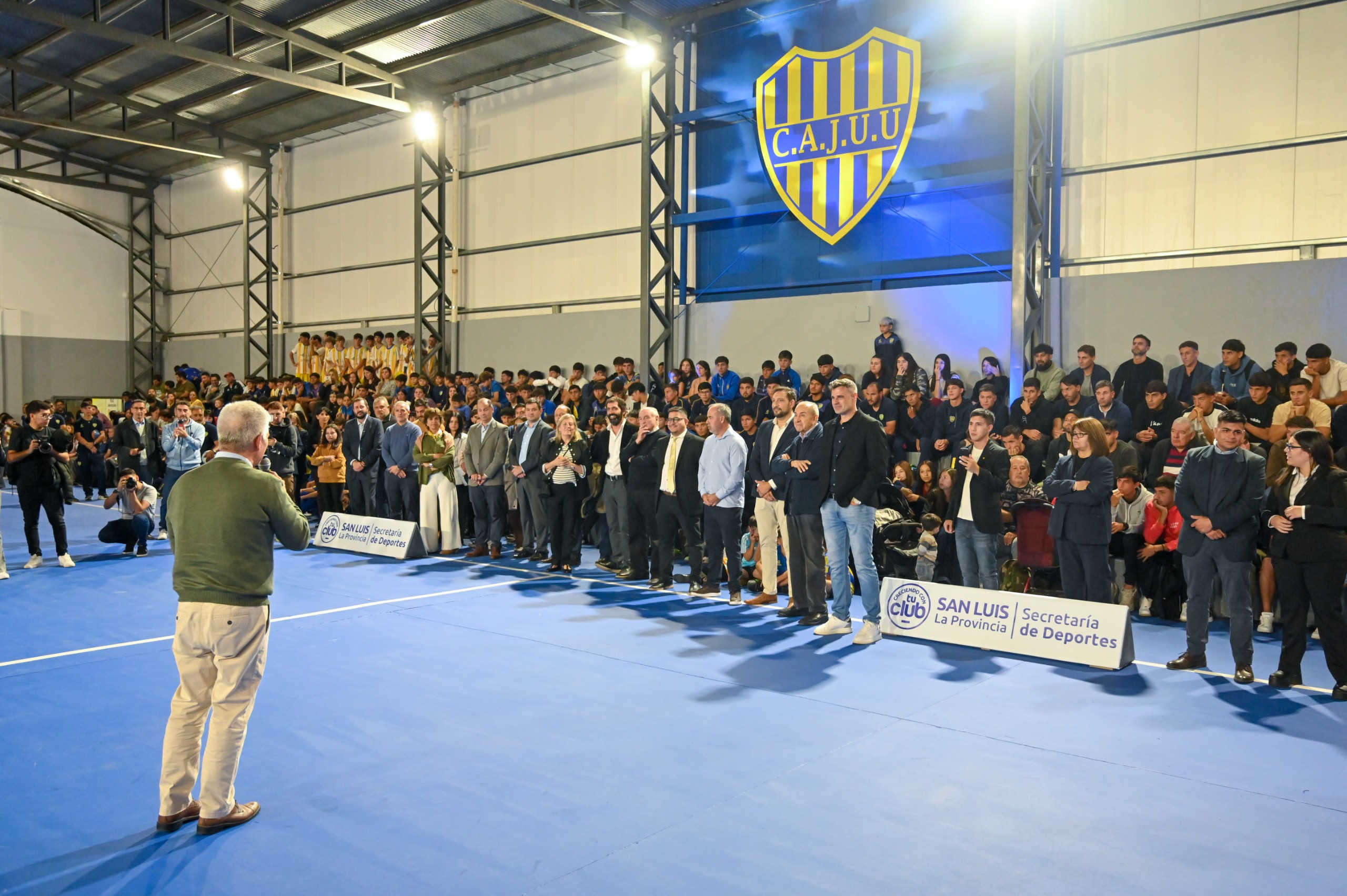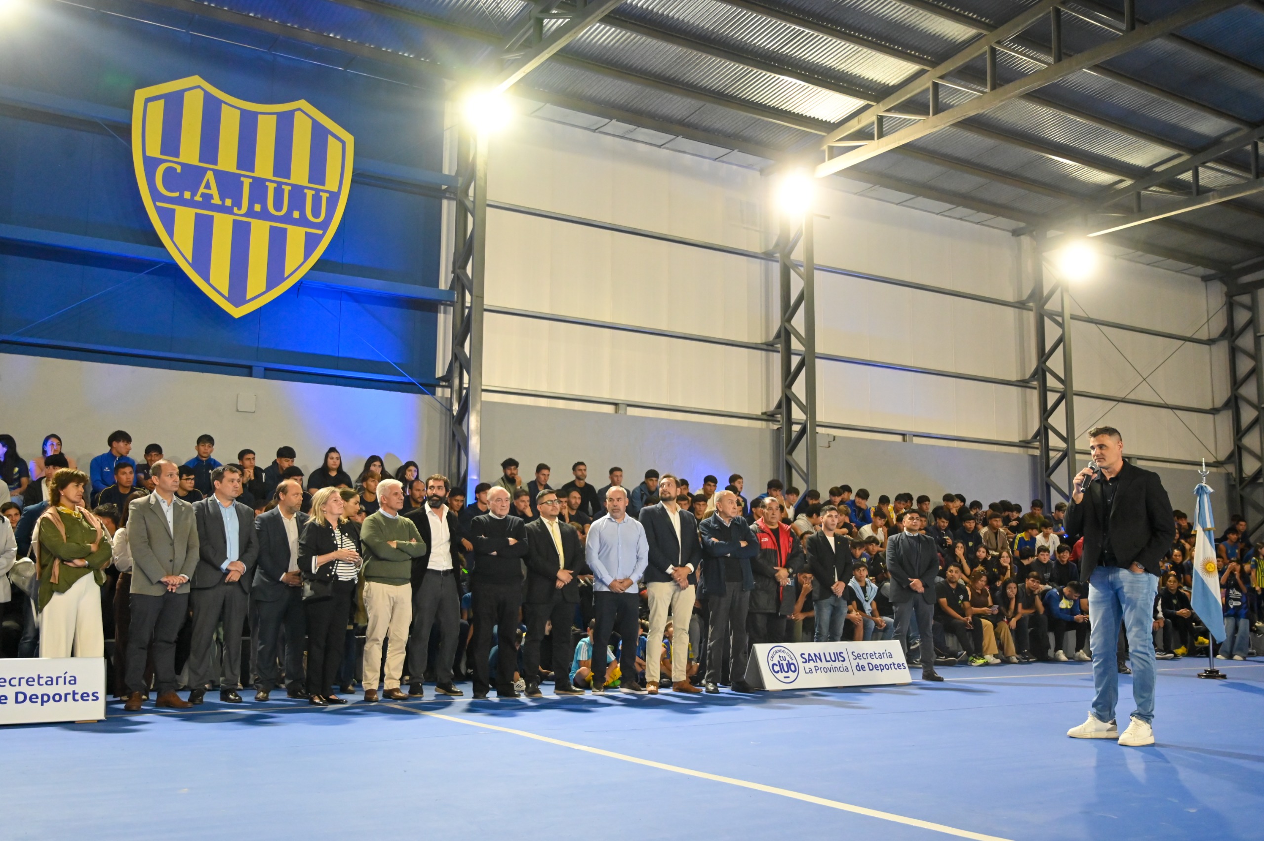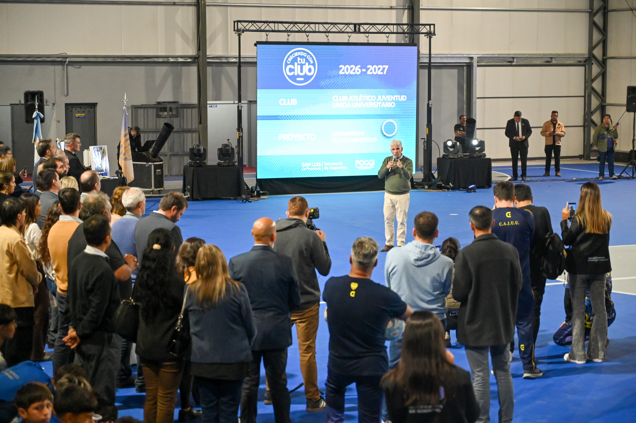 Este miércoles por la tarde, el gobernador Claudio Poggi se dirigió al predio central del Club Atlético Juventud Unida Universitario, una de las entidades deportivas más emblemáticas de la ciudad de San Luis y de toda la provincia. Allí lo esperaba la comunidad auriazul, encabezada por el presidente, Fernando Marín, para compartir un hito más de la institución: la inauguración de las obras de remodelación integral del playón deportivo, que incluyeron el cerramiento y las refacciones de los vestuarios adaptados.