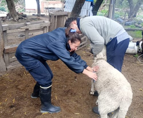 En el establecimiento Santa Rita, ubicado en el paraje San Miguel, también en Villa del Carmen, se realizó la desparasitación de 15 caprinos y 10 ovinos. Además, junto con los productores, se llevó adelante la necropsia de un chivo, determinando que la causa de muerte fue una neumonía por aspiración, asociada a una dificultad previa en la deglución.