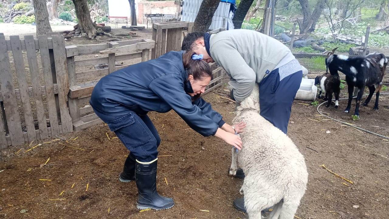En el establecimiento Santa Rita, ubicado en el paraje San Miguel, también en Villa del Carmen, se realizó la desparasitación de 15 caprinos y 10 ovinos. Además, junto con los productores, se llevó adelante la necropsia de un chivo, determinando que la causa de muerte fue una neumonía por aspiración, asociada a una dificultad previa en la deglución.