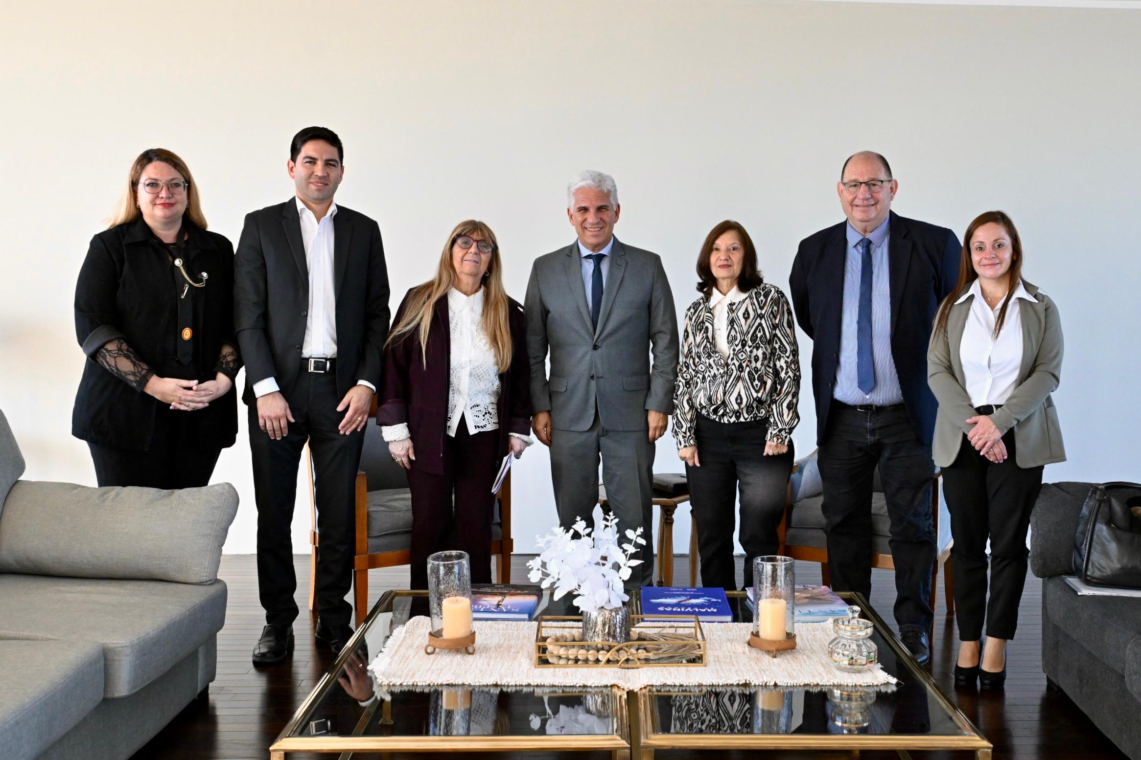 Previo a la conferencia de prensa, el gobernador Claudio Poggi recibió en su despacho a las autoridades de la Célula Argentina y Latinoamericana de Cooperativismo y Mutualismo Educacional, quienes le informaron al Mandatario los detalles más importantes del XXVII Encuentro Nacional de Cooperativas y Mutuales Escolares que se realizará el 2, 3 y 4 de julio en el Centro de Convenciones de La Punta.