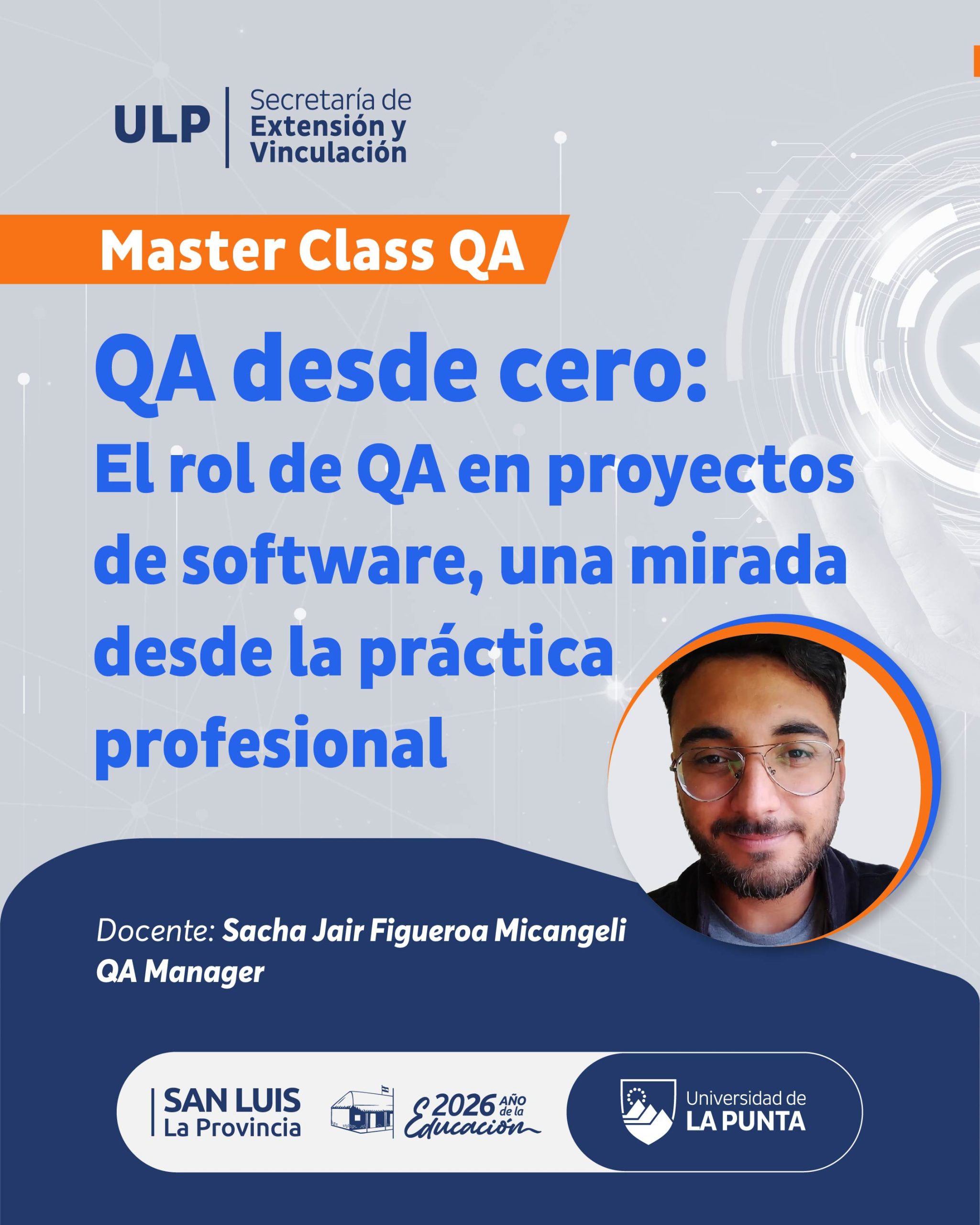 El Parque de la Industria del Conocimiento (PIC) de la Universidad de La Punta (ULP) continúa con sus propuestas de formación en tecnología y en esta oportunidad, invita a la Master Class ‘Desde cero: El rol de QA (Quality Assurance) en proyectos de software, una mirada desde la práctica profesional’. La actividad busca introducir a los participantes en una de las disciplinas más críticas y solicitadas de la industria IT: el aseguramiento de la calidad.