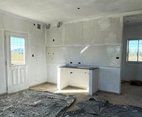 La dirección de Obras de Arquitectura y Viviendas precisó que las unidades presentan avances significativos en múltiples frentes. Actualmente, se trabaja en la colocación de revestimientos cerámicos en cocinas y baños, incluyendo terminaciones con tapacantos. En paralelo, en las cocinas se avanza con la elevación de mampostería para las mesadas, mientras que en el interior de las unidades se ejecutan tareas de pintura látex sobre muros y la instalación de artefactos sanitarios.