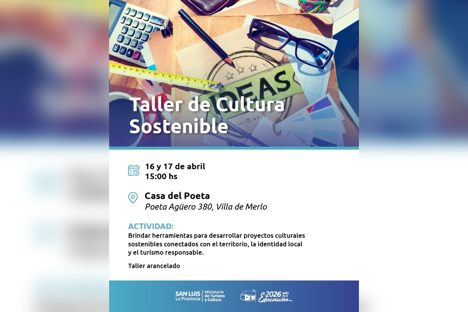Este jueves 16 y viernes 17 de abril, desde las 15:00 hasta las 18:00, la Casa del Poeta ‘Antonio Esteban Agüero’ de Villa de Merlo recibirá un taller interactivo de cultura sostenible, una propuesta de valor, modelos de negocios y programación cultural vinculada al turismo. El espacio será coordinado por las docentes y especialistas Belén De Martino y Maite Iparraguirre.