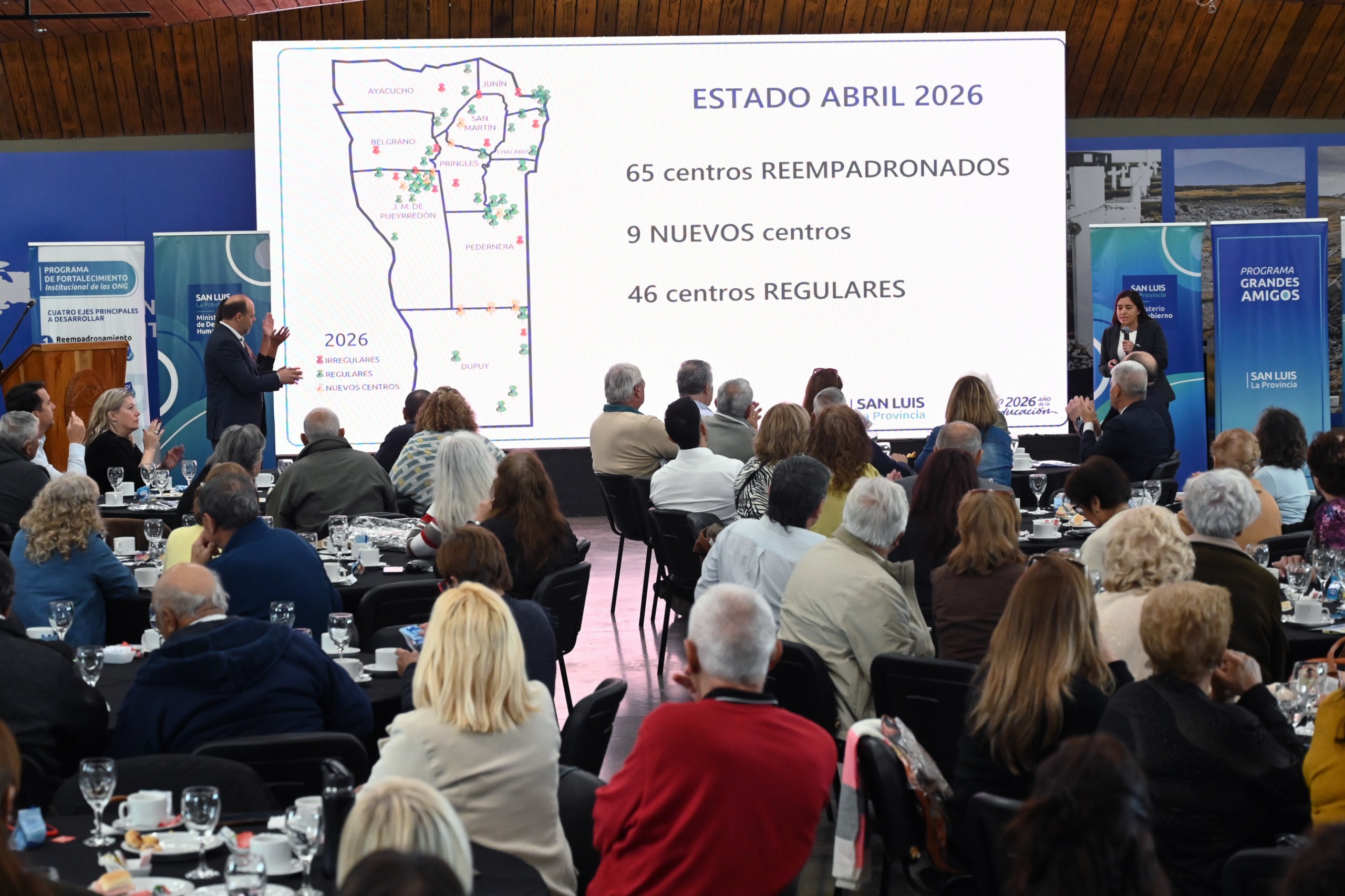 “Comenzando nuestra gestión no sabíamos a ciencia cierta cuántos centros jubilados había en la provincia. Hicimos un reempadronamiento obligatorio y nos encontramos con 41 centros de cuidados reempadronados que habían dicho ‘acá estamos, existimos’, pero había solo tres en estado regular, que estaban cumpliendo con la ley ante la dirección de Personas Jurídicas. Nuestra propuesta para ‘Grandes Amigos’ fue fortalecer institucionalmente a los centros a través de una red de asistencias que contó de tres leyes, una atención personalizada y preferencial a los centros”, contó Domínguez, y celebró: “Contamos orgullosamente que hoy tenemos 65 centros empadronados, que hemos creado 9 nuevos centros y que hay 46 centros en estado regular en este momento en la provincia. Nuestro objetivo para este año obviamente es tener el 100% de los centros de la provincia en estado regular”.