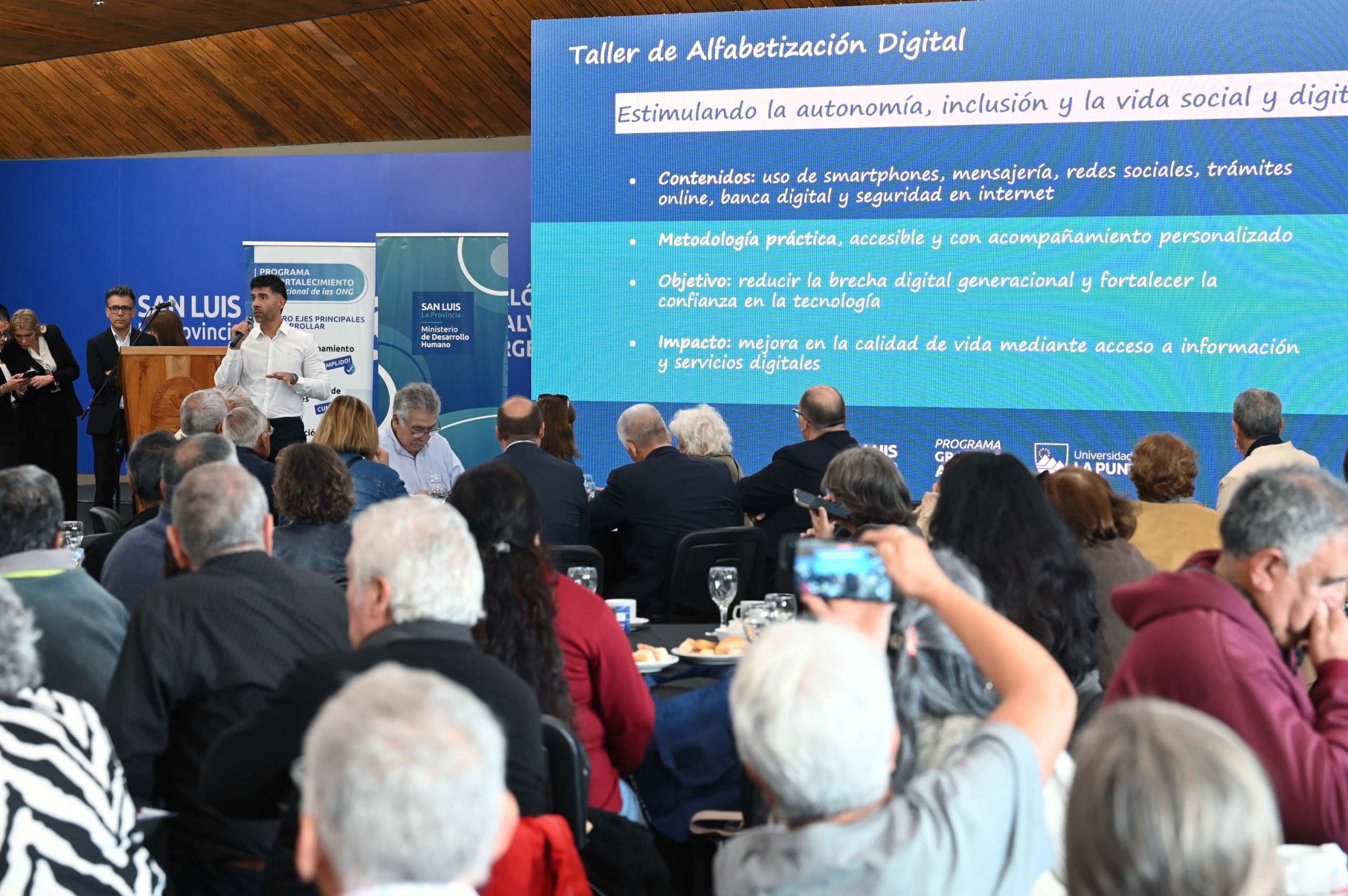 Fabio González, jefe de Formación Extracurricular de la secretaría de Extensión y Vinculación de la ULP, dijo que este año ofrecerán cuatro propuestas: tres talleres y un concurso. “El primero es de alfabetización digital, que quizás muchos ya conocen, donde enseñamos a usar el celular, a tomar fotografías, enviar mensajes, trabajar con billeteras virtuales y a evitar estafas virtuales”; “Otro de los talleres que tenemos es el taller de lectura y escritura, donde se cuentan historias, las escriben y de esa manera pueden logran expresar sus emociones”; “Otro de los talleres es el de juegos lógicos, que estimulan la mente, el razonamiento y la memoria a través del juego”. “Por último les quería contar que este año vamos a tener la tercera edición del concurso ‘Grandes retratos’, que consta de dos etapas: una de capacitación, donde enseñamos fotografía digital, a sacar fotos con el celular, a enfocar, a hacer a encuadres y a compartir sus fotos. Luego de que termine, vamos a hacer el lanzamiento del concurso, donde a través del centro de jubilados se van a inscribir, enviar sus fotos y seguramente a mediados de año un jurado va a elegir la imagen más representativa. Para nosotros estas actividades tienen un punto en común como dije al principio: poderles dar el protagonismo que ustedes se merecen”.