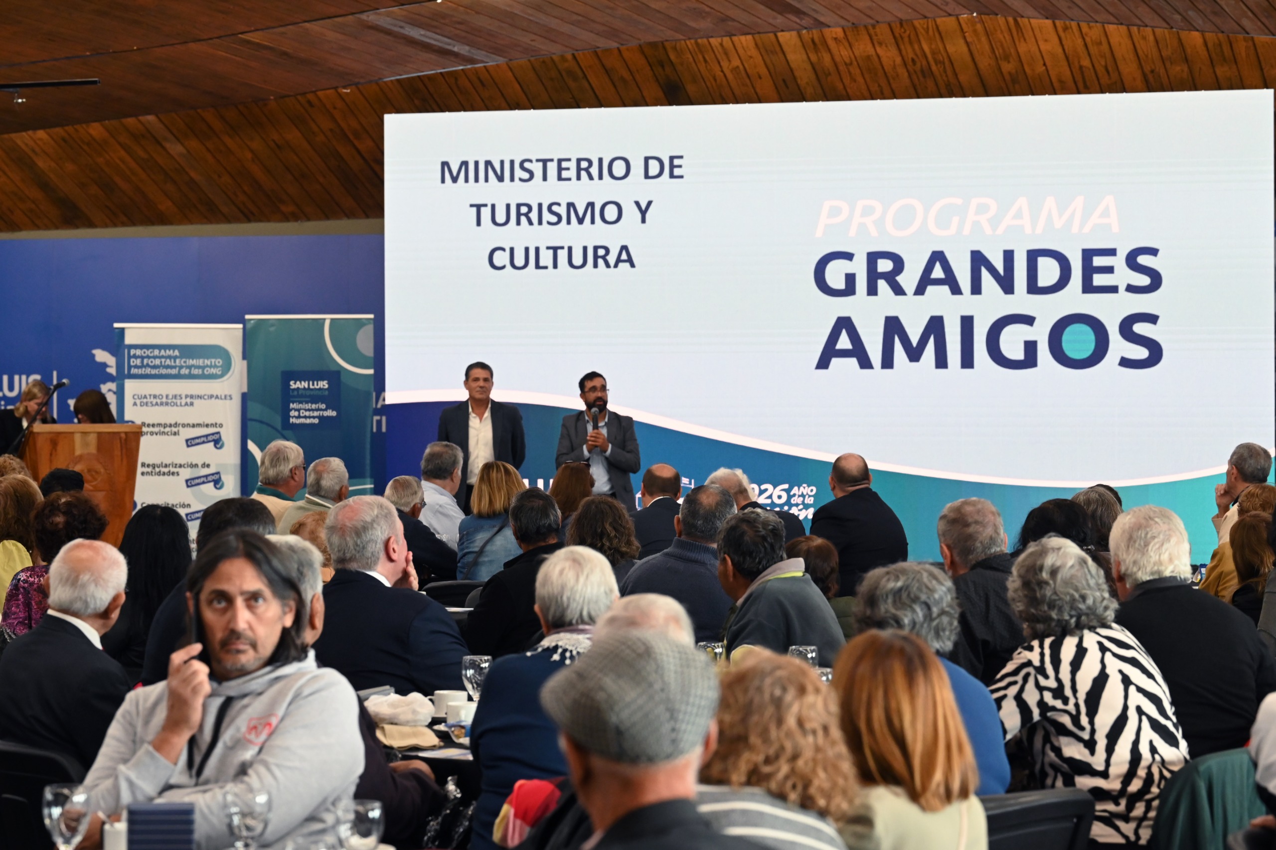 La iniciativa ‘Grandes Amigos’ nació en 2024 como un trabajo interministerial coordinado por el ministerio de Desarrollo Humano. “Tenemos al ministerio de Educación a través de la dirección de Educación Obligatoria; al ministerio de Gobierno a través de la dirección de Personas Jurídicas y la dirección de Defensa Al Consumidor; ministerio de Salud con el programa ‘Grandes Amigos Salud’ en el hospital ‘Ramón Carrillo’; al ministerio de Turismo y Cultura a través de su dirección de Relaciones Institucionales; a la secretaría de Deporte a través de la dirección de Deporte Comunitario; y la Universidad de La Punta mediante la secretaría de Extensión y Vinculación”, explicó Gustavo Bertolini, al frente de la cartera de Desarrollo Humano.