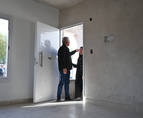 En el recorrido, la directora de Obras de Arquitectura, Marina Ortiz, le mostró las nuevas características que diferencian a ‘Tenemos Futuro’ de ‘Progreso’ y ‘Sueños’. Cada unidad cuenta con estructuras de hormigón armado y techos de losa pretensada. Ya se ha realizado la instalación de las ventanas de aluminio, puertas exteriores, pisos y revestimiento cerámicos. Por su parte, se continúa en las instalaciones completas de gas, electricidad, agua fría, caliente, cloacas y desagües.