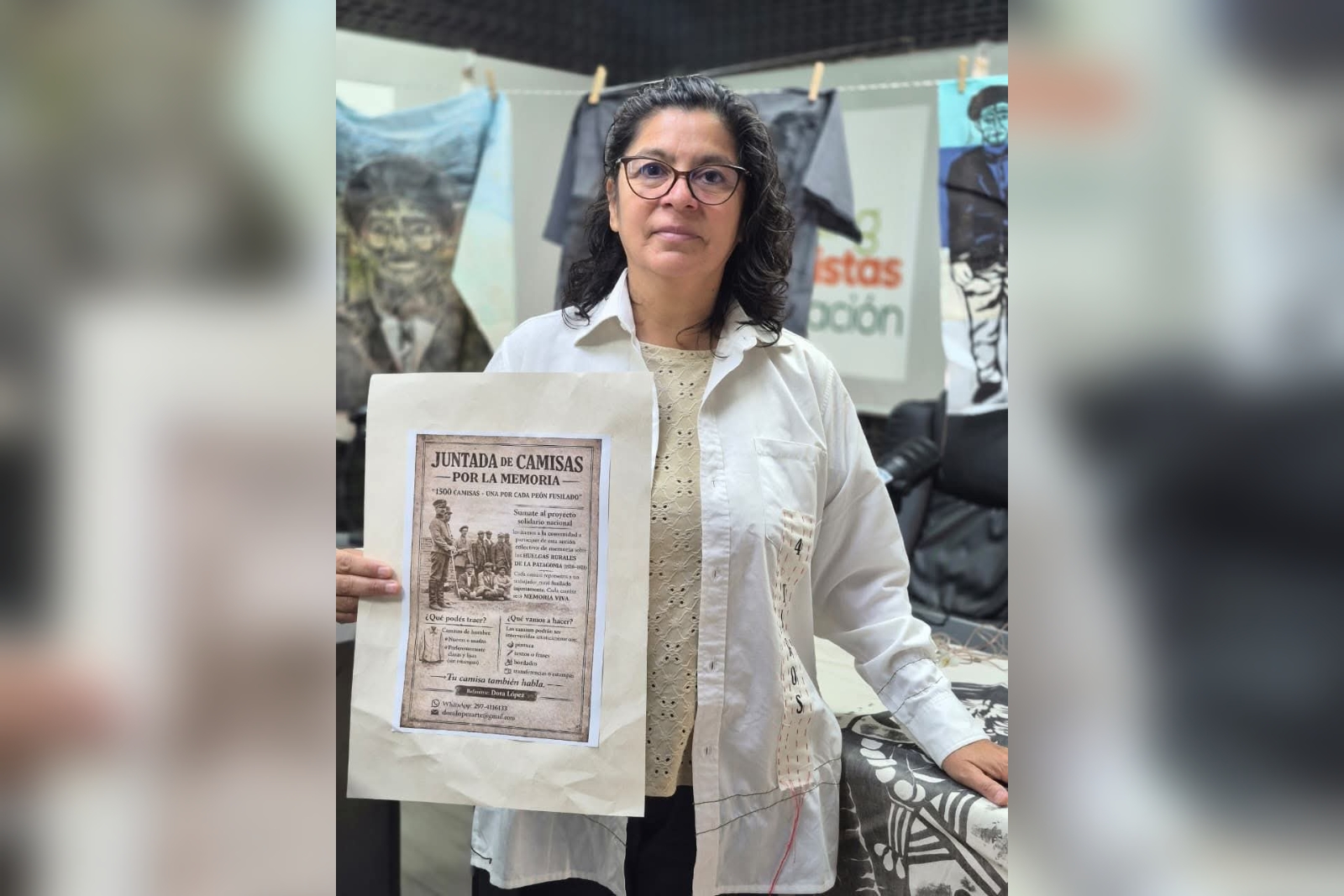 La campaña de las 1.500 camisas intervenidas es una acción artística de fuerte carga simbólica que traduce un hecho histórico violento en una experiencia colectiva y participativa. Se convierte a cada prenda en soporte de memoria articulando arte, historia y comunidad a escala nacional. Esta iniciativa forma parte de un proyecto mayor liderado por Dora López que busca mantener vigente la memoria de la Patagonia Rebelde a través del arte.