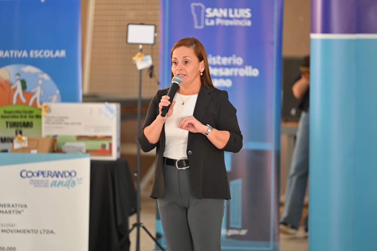Durante el acto, Poggi destacó el crecimiento del Programa: “Hemos formado 20 cooperativas escolares en la provincia y queremos duplicarlas este año a 40. Tienen un valor muy importante porque fomentan el trabajo en equipo y el respeto entre estudiantes de diferentes edades”.
