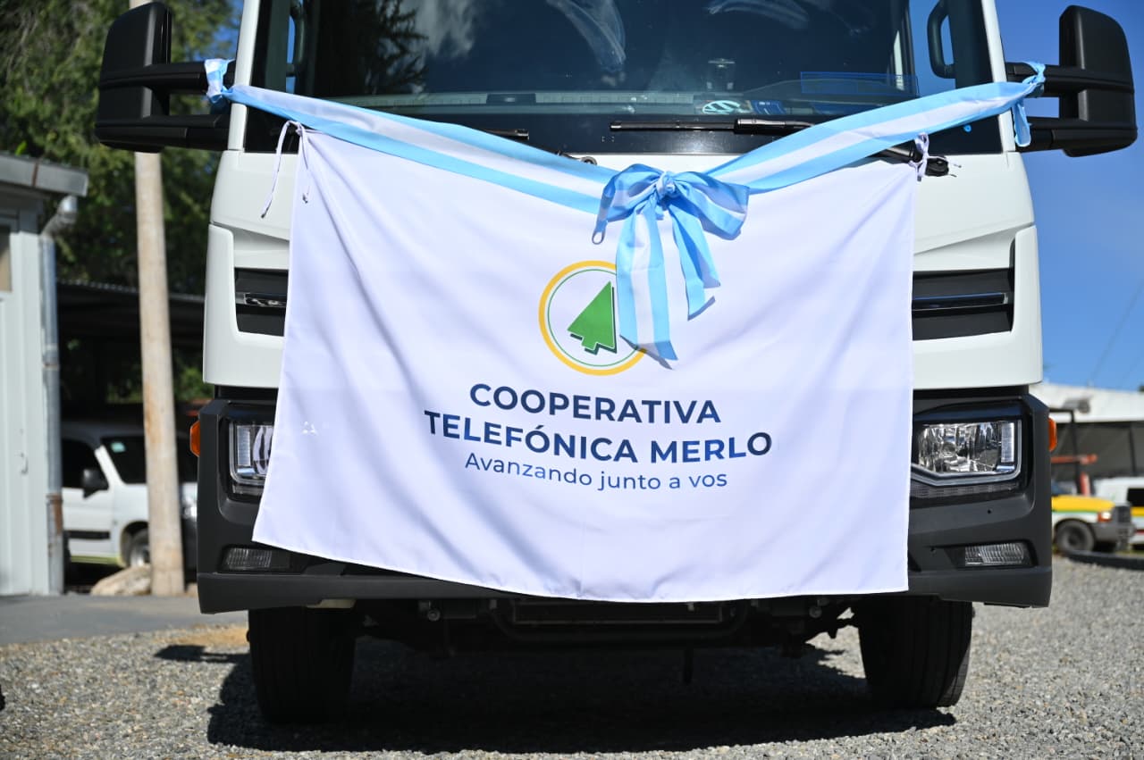 La Cooperativa Telefónica de Merlo colocó el cartel de ‘Cumplimos’ junto con el Gobernador