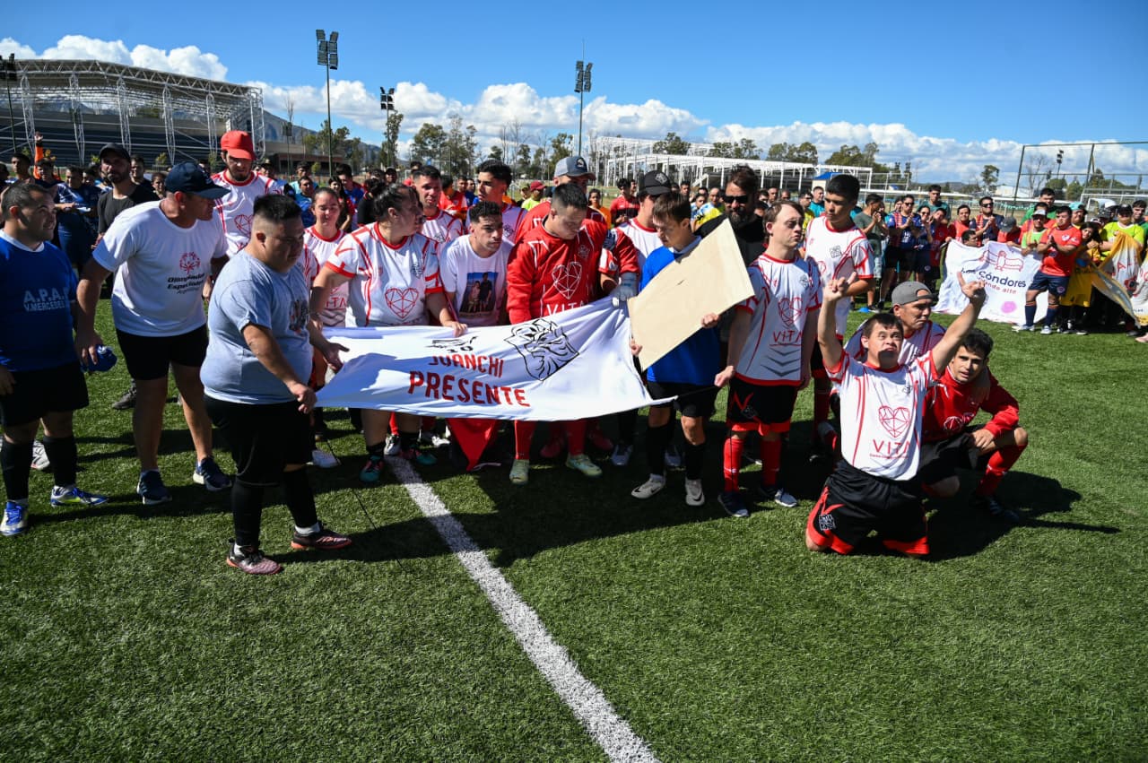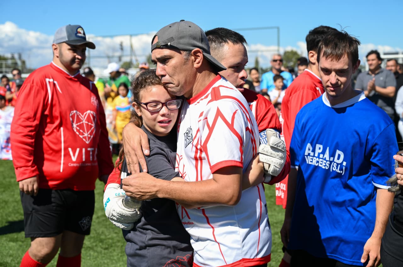 Uno de los momentos más emotivos de la jornada llegó con el reconocimiento y homenaje a Juan Ramón ‘Juanchi’ Calderón, histórico jugador de la Liga de Fútbol 5 Adaptado que falleció en 2025. El Gobierno le entregó un reconocimiento a la familia y todo el estadio aplaudió efusivamente a quien fuera un referente importante del deporte adaptado para la provincia.