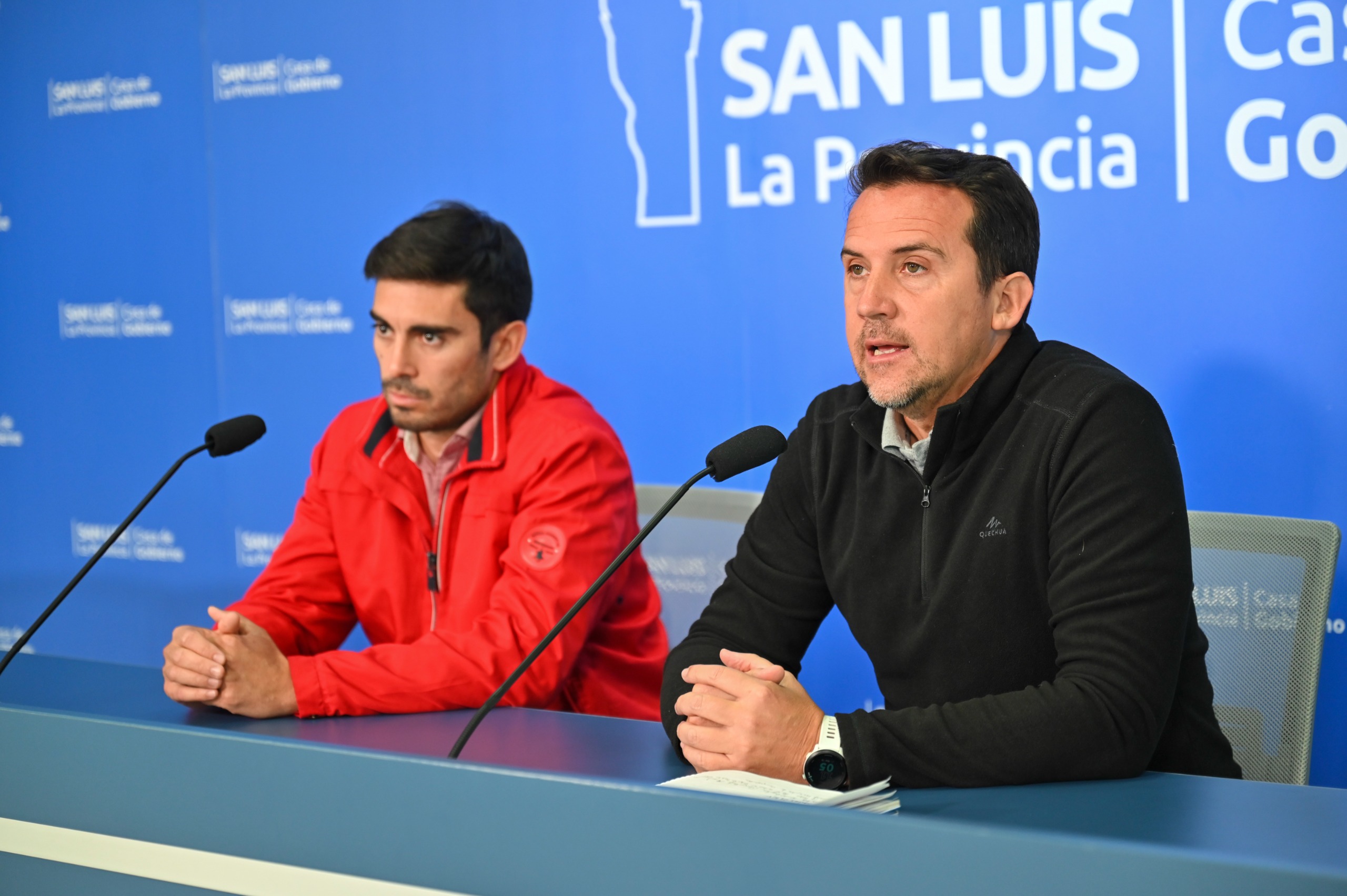 El director de Deporte Comunitario, Pedro Nadal y el subdirector, Alan Quiroga, brindaron una conferencia de prensa este lunes para anunciar una nueva carrera de calle que se llamará ‘San Luis 21K’. La competencia será el próximo 16 de mayo y promete recorrer varios puntos destacados dentro de la ciudad camino a la localidad de Juana Koslay.