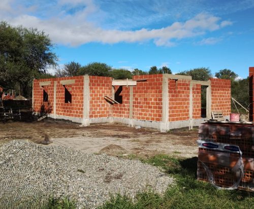 En Los Molles se trabaja en diez casas correspondientes al programa ‘Tenemos Futuro’. Las más avanzadas cuentan con fundaciones y vigas de encadenado ejecutadas, junto con la elevación completa de los muros portantes en mampostería de ladrillo hueco. Además, ya están definidos los vanos de aberturas (puertas y ventanas) y se observan los encadenados horizontales superiores. Esto indica que el esquema estructural se encuentra prácticamente cerrado y próximo a dar paso a la ejecución de cubiertas e instalaciones.