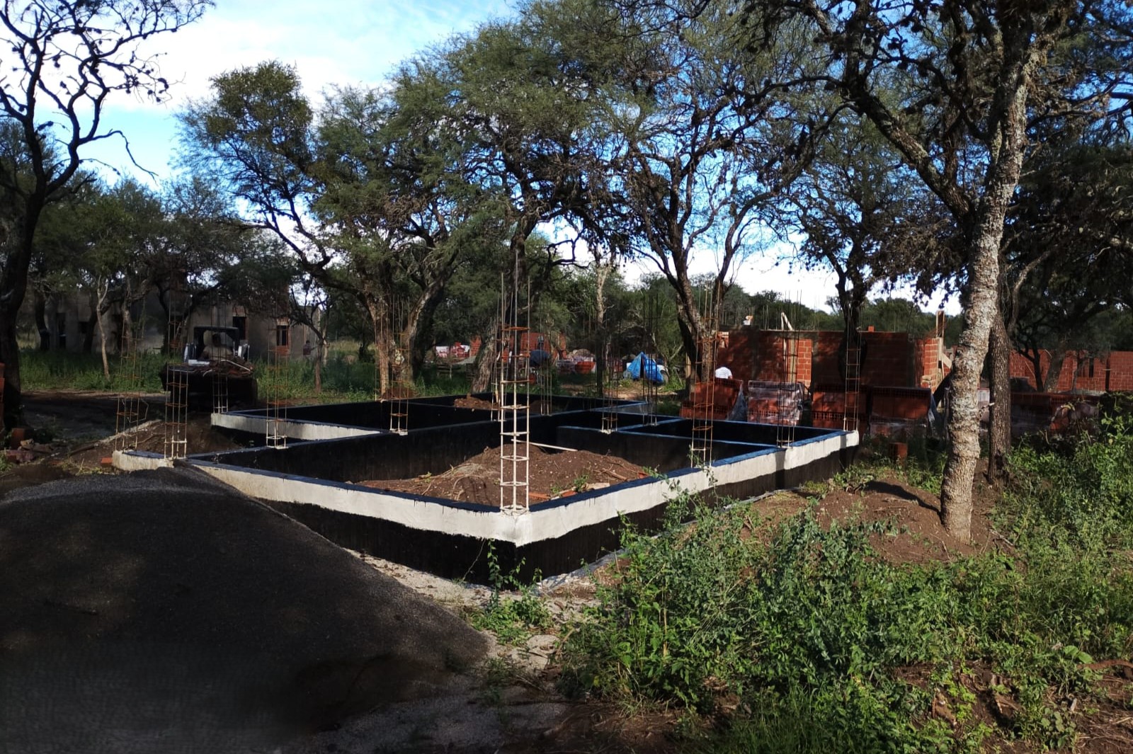 En el mismo predio, otras unidades se encuentran en una etapa inicial, con las fundaciones finalizadas, vigas de encadenado inferior y la correspondiente impermeabilización perimetral (capa aisladora). También se disponen los arranques de columnas con armaduras verticales, preparados para iniciar la elevación de muros.