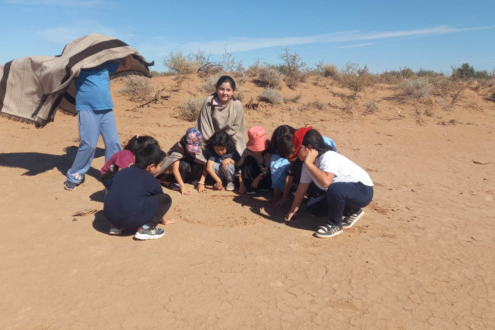 Como parte de las actividades previstas en la Semana del Originario Americano, la Escuela Pública Digital N°16 ‘Xumucpe’ (Hijos del Sol), ubicada en la Comunidad Huarpe de Guanacache, llevó a cabo una jornada de exploración en el territorio ancestral.