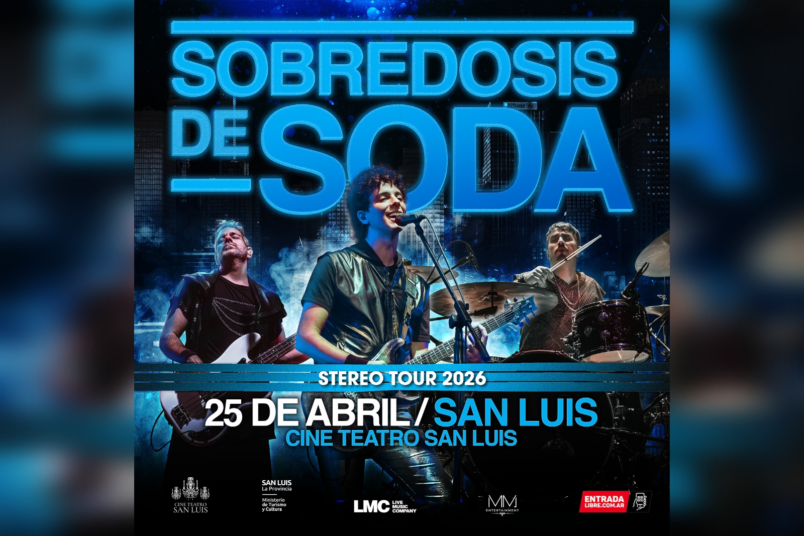 En cada show, ‘Sobredosis de Soda’ combina una fidelidad sonora excepcional con una puesta en escena moderna y actual. El espectáculo volverá a San Luis como parte de su gira Stereo Tour 2026, con cita el sábado 25 de abril a las 21:00 en el Cine Teatro San Luis.
