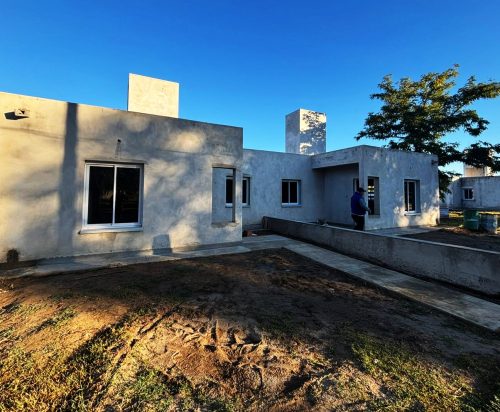 En paralelo, en cuatro viviendas se continúa en etapa de obra gruesa, con revoques interiores y exteriores en ejecución, lo que permitirá su incorporación progresiva a las fases de terminación en el corto plazo. En conjunto, el desarrollo muestra un ritmo de obra equilibrado, con distintos frentes activos que anticipan próximas instancias centradas en la finalización de instalaciones, colocación de aberturas restantes y detalles finales de cara a su pronta entrega.