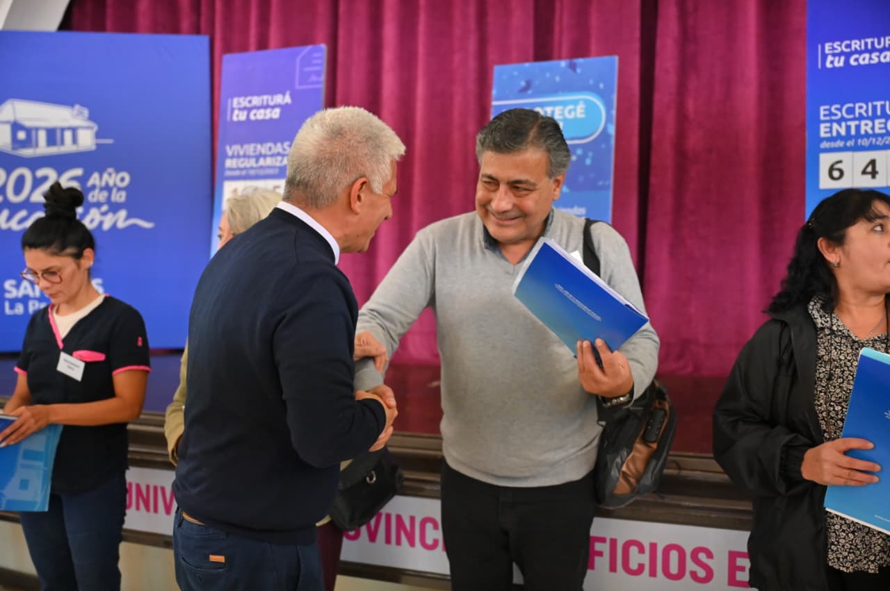 El Gobernador destacó la complementariedad entre los programas ‘Escriturá tu Casa’ y ‘Protegé tu Casa’, que permiten no solo acceder a la titularidad formal, sino también resguardar el inmueble. “La escritura es la base de la seguridad jurídica, y la protección de la vivienda es el paso siguiente para cuidar ese patrimonio familiar”, afirmó.