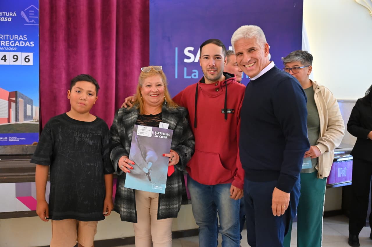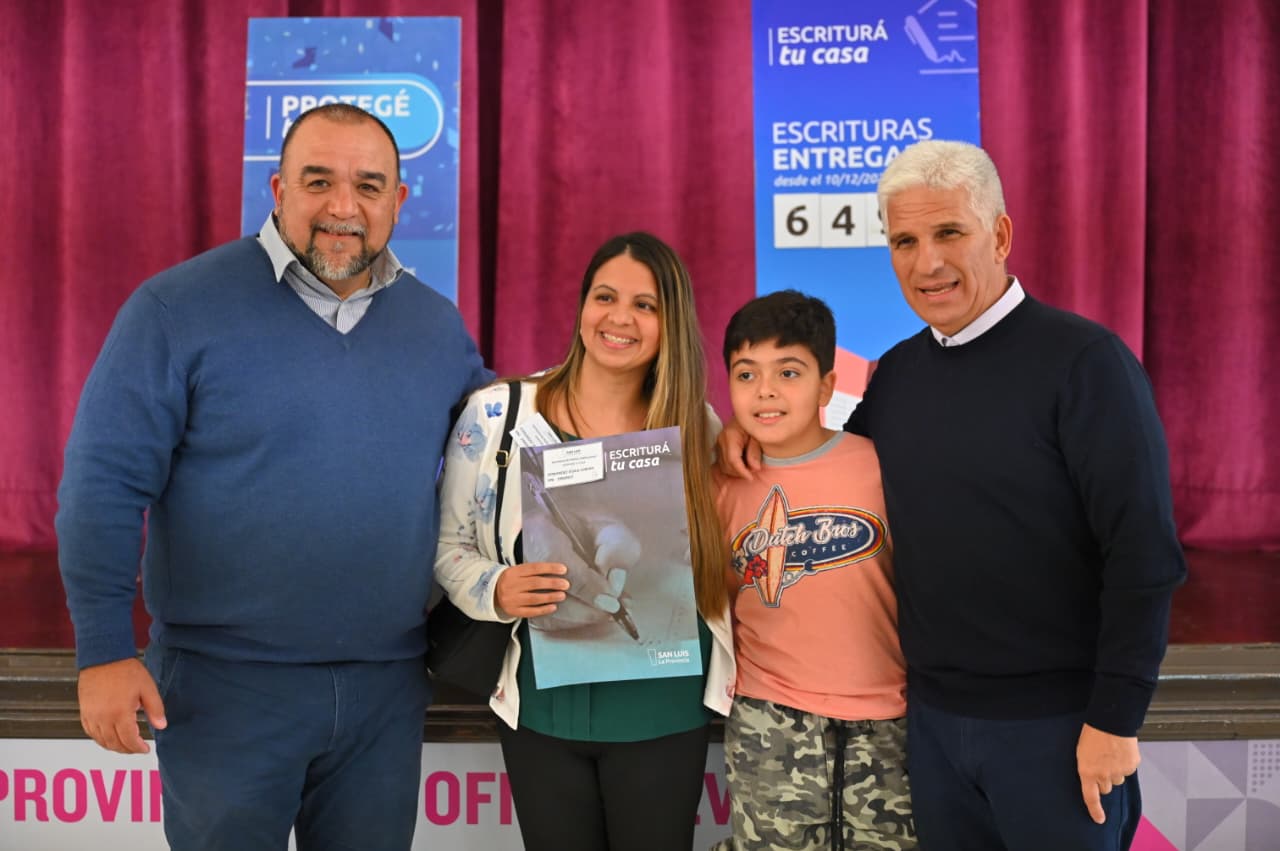 En el contexto de las políticas habitacionales que impulsa la provincia, el gobernador Claudio Poggi encabezó una nueva entrega de escrituras, decretos de regularización dominial y actas del programa ‘Protegé tu Casa’, consolidando el acceso a la propiedad y la protección legal de viviendas en Villa Mercedes.