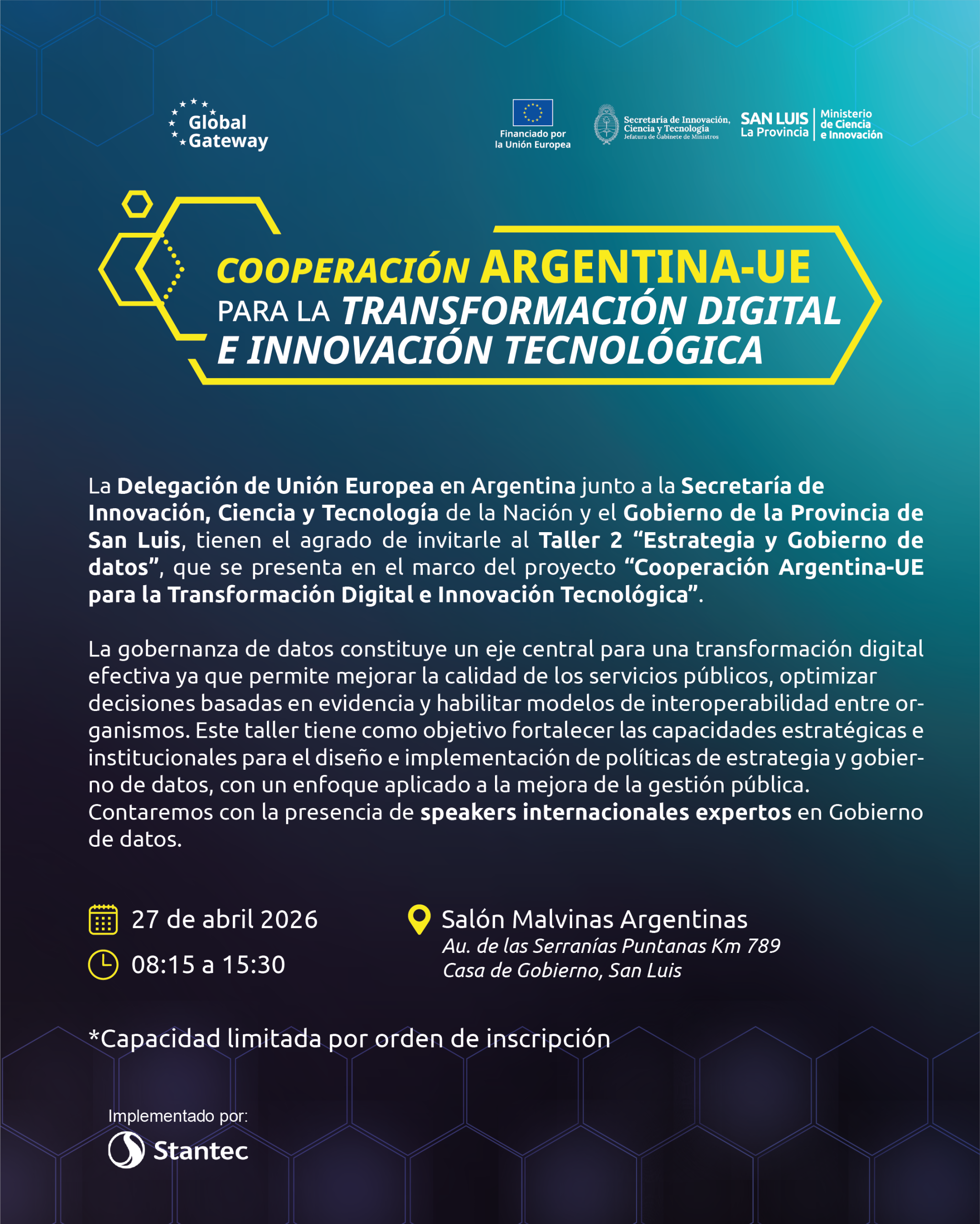 La iniciativa forma parte del proyecto ‘Cooperación Argentina–Unión Europea para la Transformación Digital e Innovación Tecnológica’, orientado a fortalecer capacidades institucionales, mejorar la gestión pública y promover el uso estratégico de la tecnología en áreas clave del desarrollo. El encuentro en San Luis será el segundo de una serie de talleres que se realizan en distintas provincias argentinas.