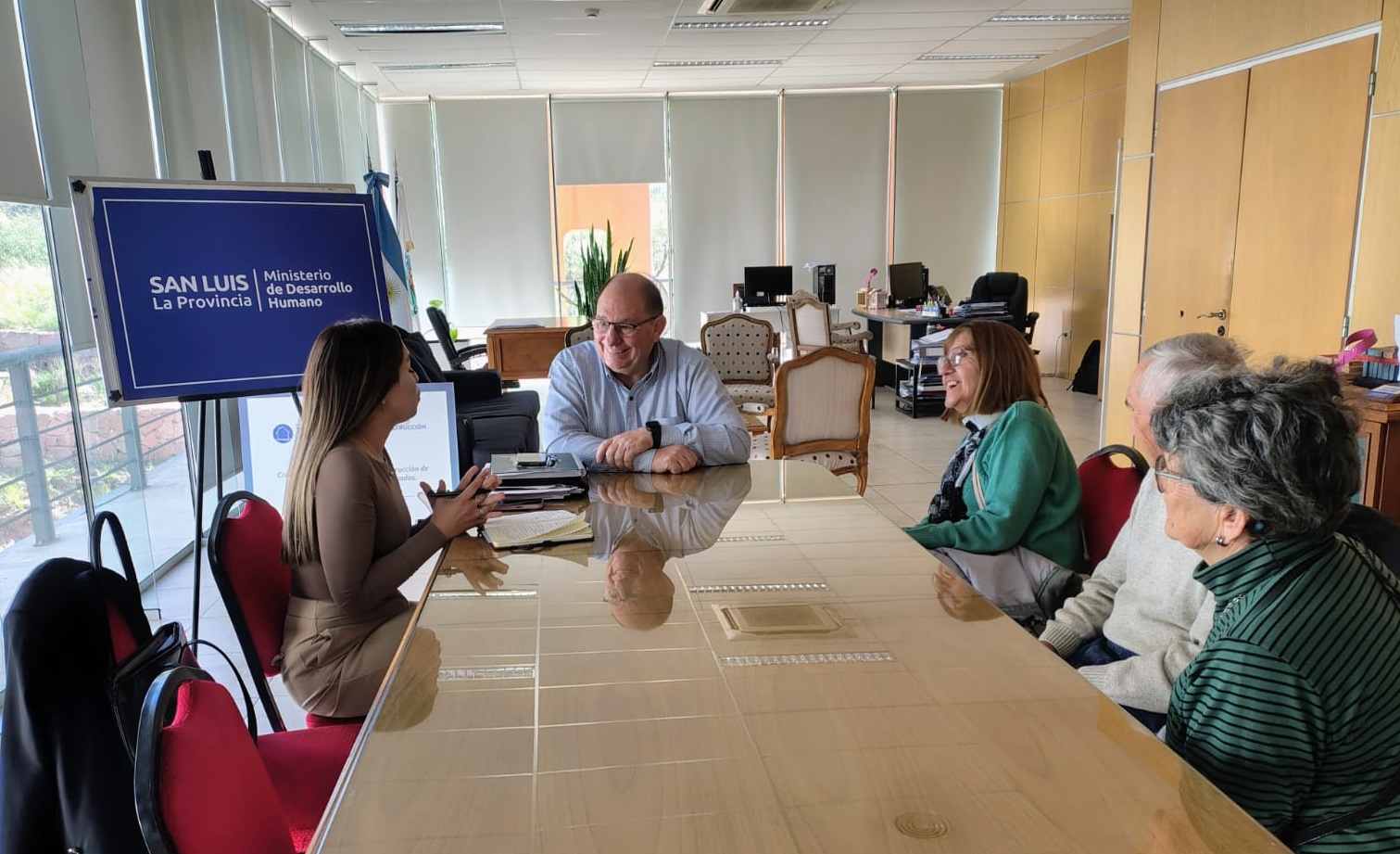 El ministro de Desarrollo Humano, Gustavo Bertolini, recibió en su despacho a la intendenta de Cortaderas, Macarena Benítez y a autoridades del centro de jubilados de la localidad para desarrollar un encuentro con una variada agenda de temas a abordar.