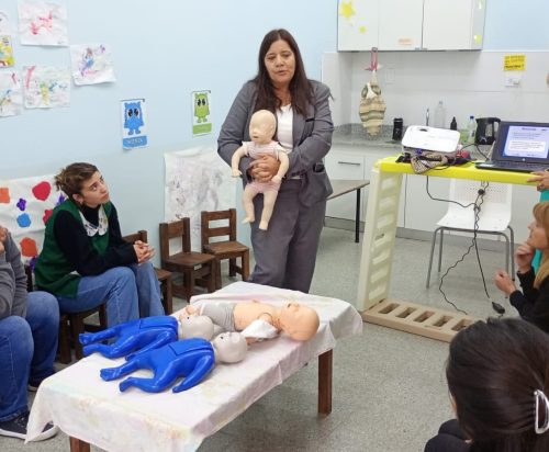 El personal del recientemente inaugurado CDI adquirió conocimientos relacionados a reanimación cardiopulmonar en niños, técnicas de masaje cardíaco, maniobras de Heimlich, sueño seguro del bebé y prevención de la muerte súbita, todos necesarios para actuar ante una emergencia mientras se espera la llegada de los profesionales de salud.