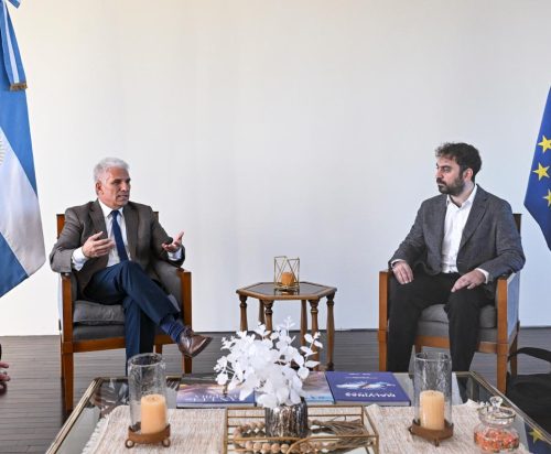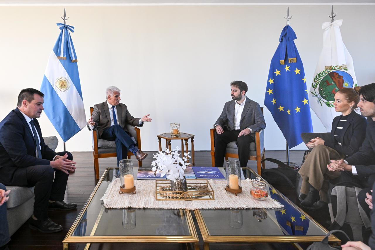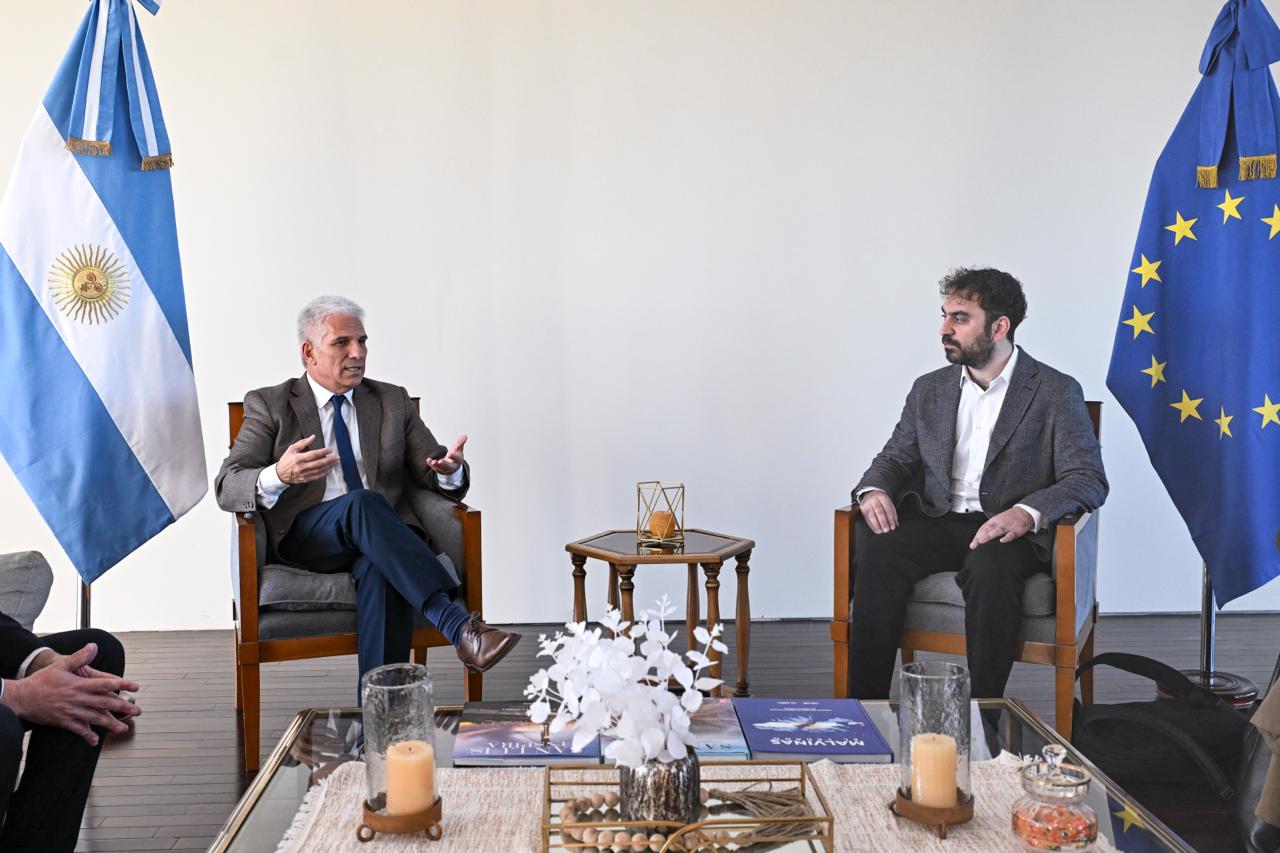 La reunión se concretó pasadas las 8:30 en Casa de Gobierno, minutos antes de comenzar el Taller 2 ‘Estratégica y Gobierno de Datos’ – Cooperación Argentina-UE para la Transformación Digital e Innovación Tecnológica que se realiza en el salón Malvinas Argentinas y terminará en horas de la tarde.
