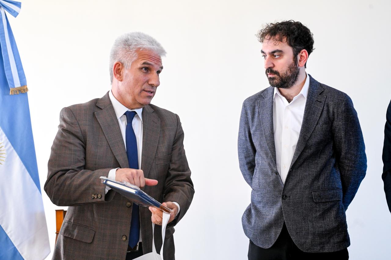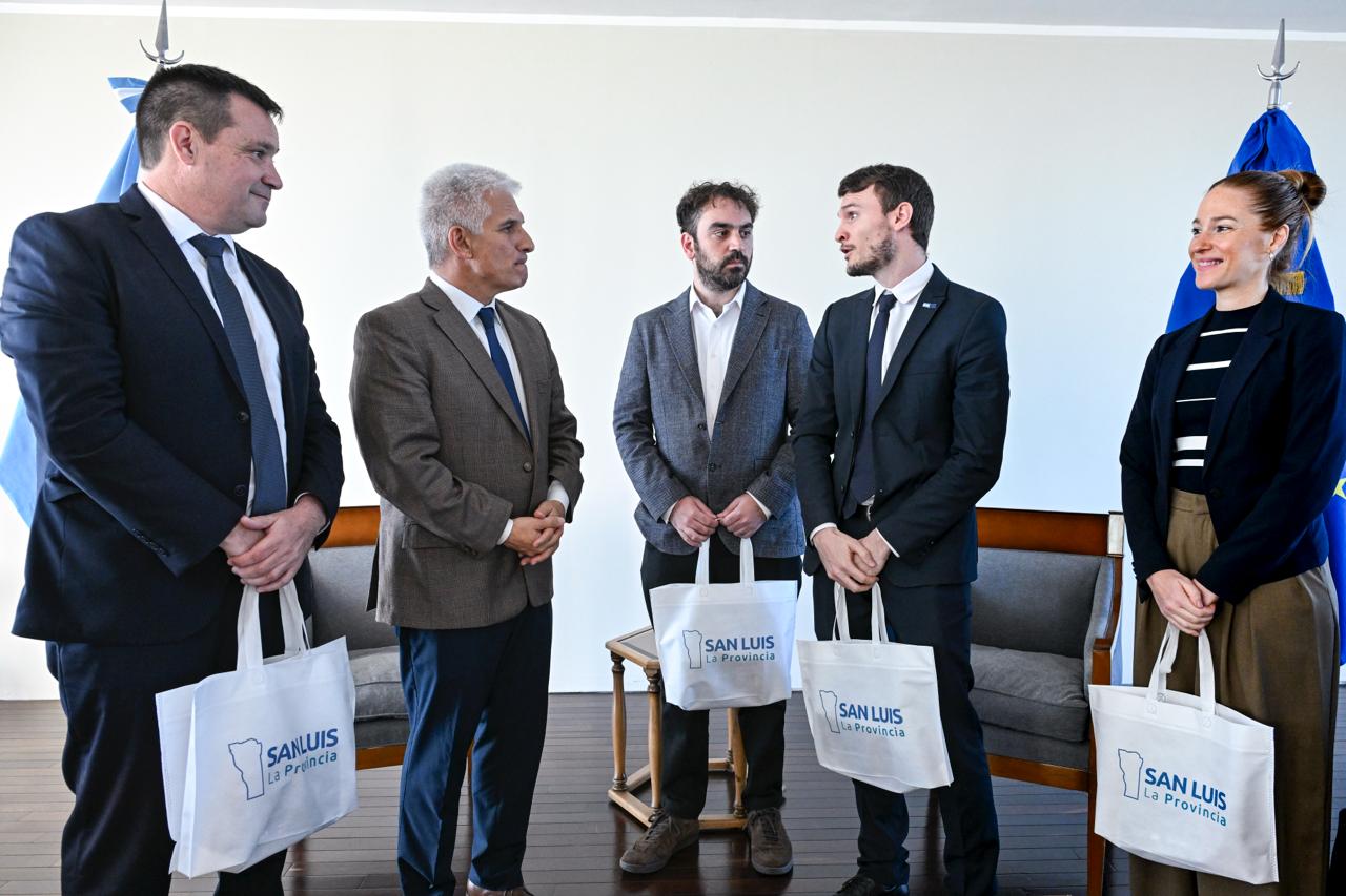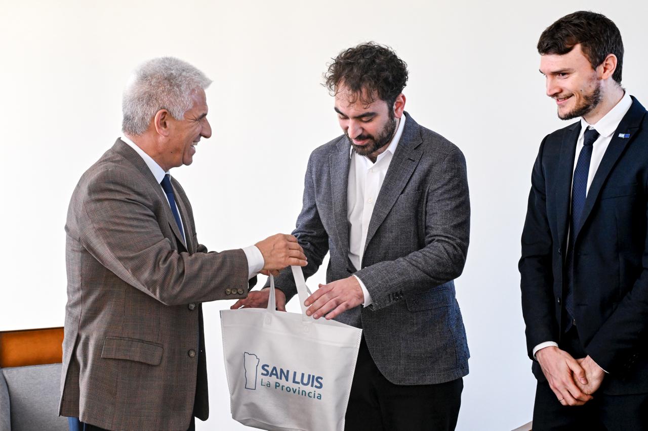 El gobernador Claudio Poggi recibió también los saludos protocolares de funcionarios de la secretaría de Innovación, Ciencia y Tecnología de la Nación que luego participaron de un acto en el salón Malvinas Argentinas. Llegaron acompañados por el ministro de Ciencia e Innovación de San Luis, Pedro Canali.